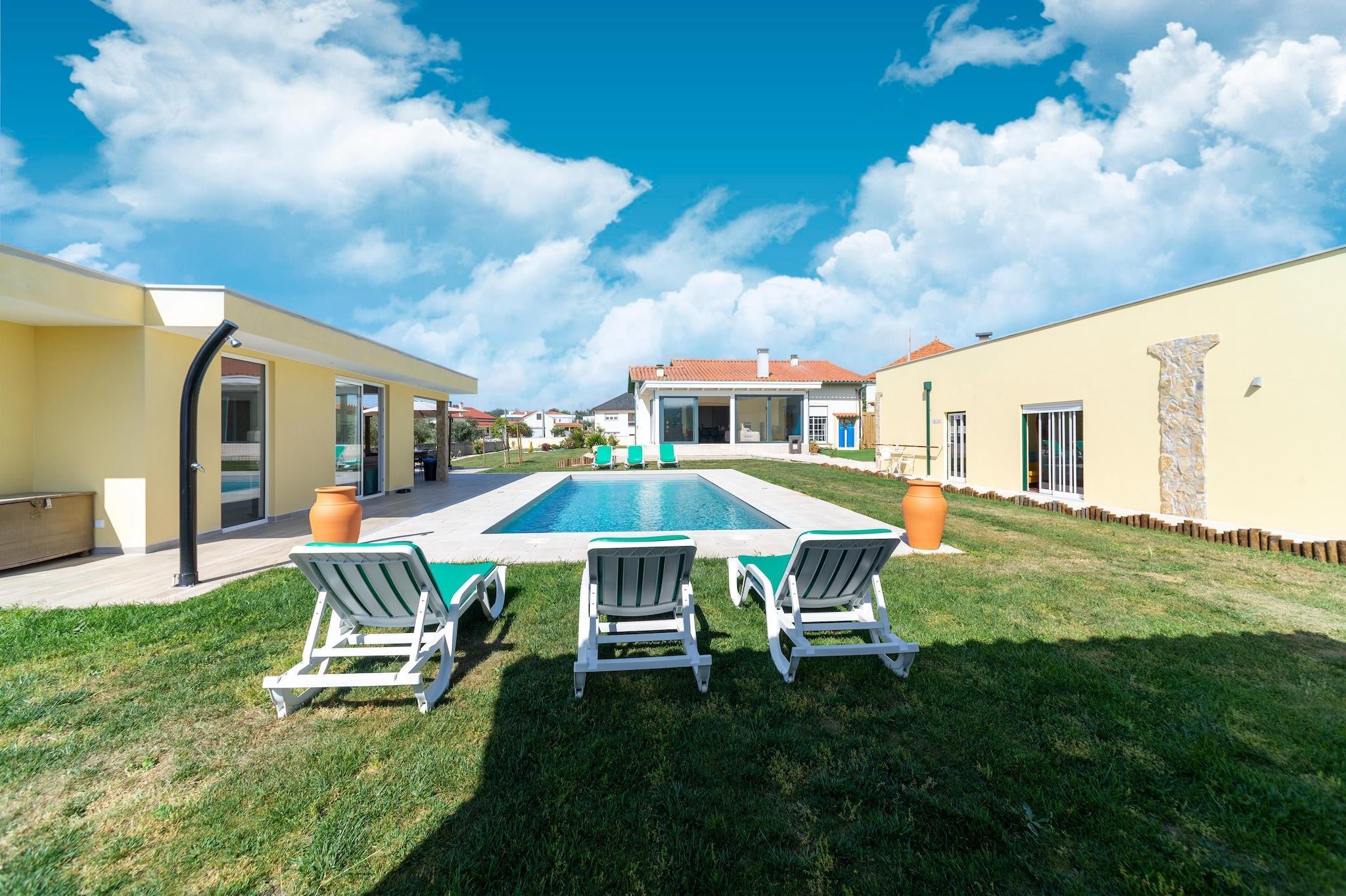 Inmitten der ruhigen Landschaft von Netos Almagreira bietet dieses charmante Ferienhaus einen erholsamen Rückzugsort für Familien und Freunde. Mit stilvollem Interieur und Zugang zu einem großen Gemeinschaftspool, einer Sauna, einem Whirlpool und einem wunderschön gepflegten Garten ist es der perfekte Ort zum Entspannen und um die Natur wiederzuentdecken. Das Haus bietet komfortablen Platz für Gäste mit gemütlicher Raumaufteilung und einer gut ausgestatteten Gemeinschaftsküche im Freien. Hier können Sie Ihre Mahlzeiten auf der Terrasse oder im Innenhof genießen. Kinder werden das gemeinschaftliche Trampolin lieben, während Erwachsene auf Liegestühlen Sonne tanken oder ruhige Momente in der Spa-Lounge genießen können. Das Anwesen verfügt außerdem über einen gemeinschaftlichen Grillplatz und Wellnesseinrichtungen für zusätzliches Wohlbefinden. Nur 25 km vom Strand Praia da Leirosa und 45 km von Figueira da Foz entfernt, ist das Haus ein idealer Ausgangspunkt für Tagesausflüge und Küstenabenteuer. Wander- und Radwege umgeben die Umgebung, und nahe gelegene Restaurants und Supermärkte sorgen für einen komfortablen Aufenthalt. Ob Sie die Region erkunden oder einfach im Garten entspannen – dieses ländliche Refugium bietet ein ruhiges und erholsames Erlebnis.
