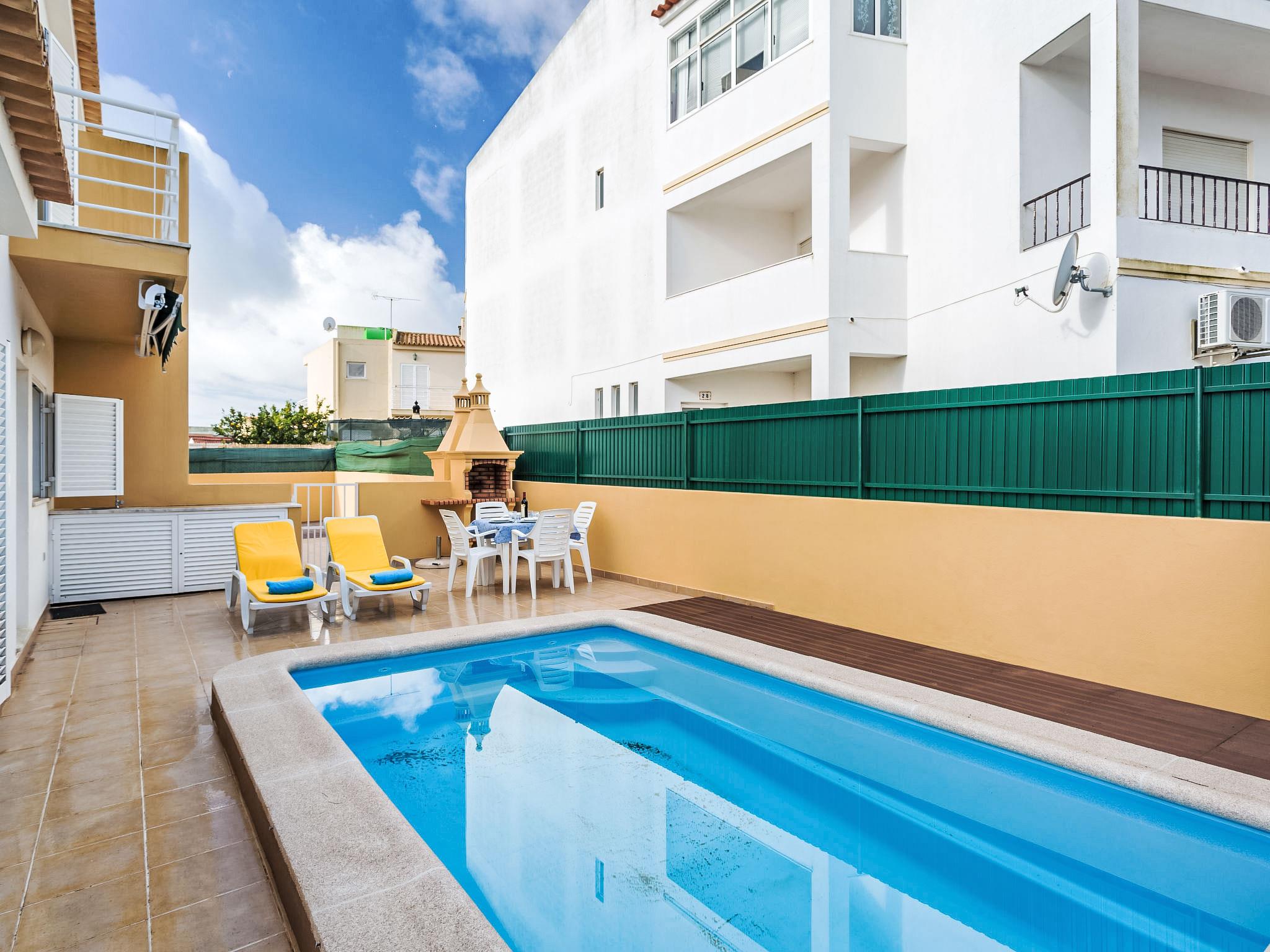 3 km von centro Armação de Pera: Schönes, gemütliches Reihenhaus "Grand Beach Hit", auf 2 Stockwerken, einseitig angebaut. Ausserhalb des Ortes, 500 m vom Zentrum von Pera, ruhige Lage im Villenviertel, 3 km vom Meer. Zur Alleinbenutzung: Grundstück 172 m2 (eingezäunt), Schwimmbad eckig (2 x 4 m, 135 - 135 cm tief, saisonale Verfügbarkeit: 01.Jan. - 31.Dez.). Grill. Im Hause: Wireless LAN, Waschmaschine. Wäschewechsel (zusätzlich extra). Handtuchwechsel (zusätzlich extra). Wohnungsreinigung möglich (extra). Abholservice vom Flughafen (extra). Parkplatz beim Haus. Einkaufsgeschäft 400 m, Lebensmittelgeschäft 600 m, Supermarkt 2.4 km, Restaurant, Bar 500 m, Bäckerei 2.4 km, Café 170 m, Internet-Café 4.9 km, Biergarten 4.9 km, Bushaltestelle 850 m, Sandstrand "Praia dos Pescadores" 3 km. Sporthafen 8.3 km, Golfplatz (18 Loch) 3.9 km, Surfschule 5.4 km, Reitstall 2.6 km. Nahe gelegene Sehenswürdigkeiten: Zoomarine 2.8 km, Praia da Galé Oeste 5.1 km, Algarve Shopping 5.9 km, Aqualand 3.7 km, Albufeira 13.8 km, Golf Course Salgados 3.8 km. Bekannte Seen in der Umgebung sind gut erreichbar: Lagoa Dos Salgados 3.7 km. Wandergebiete: Monchique. Bitte beachten: Fahrzeug empfohlen. Geeignet für Familien. Jugendgruppen nur auf Anfrage. Be- und Entladen am Ferienhaus möglich. Die Nachbarschaft ist sehr lärmempfindlich. Ruhe und gutes Benehmen wird erwartet.