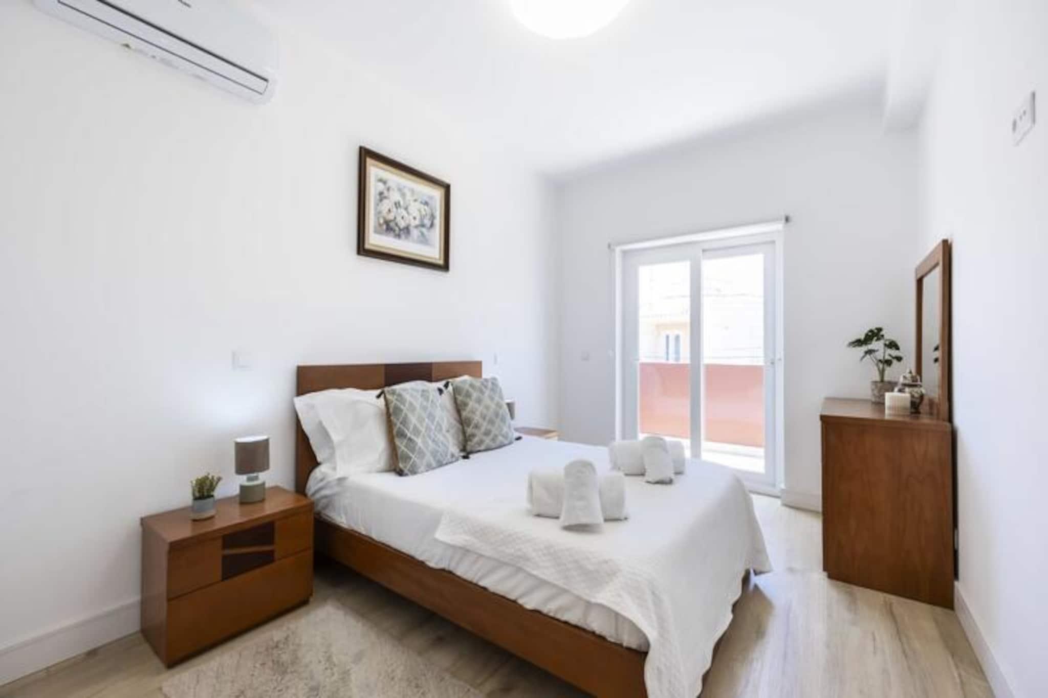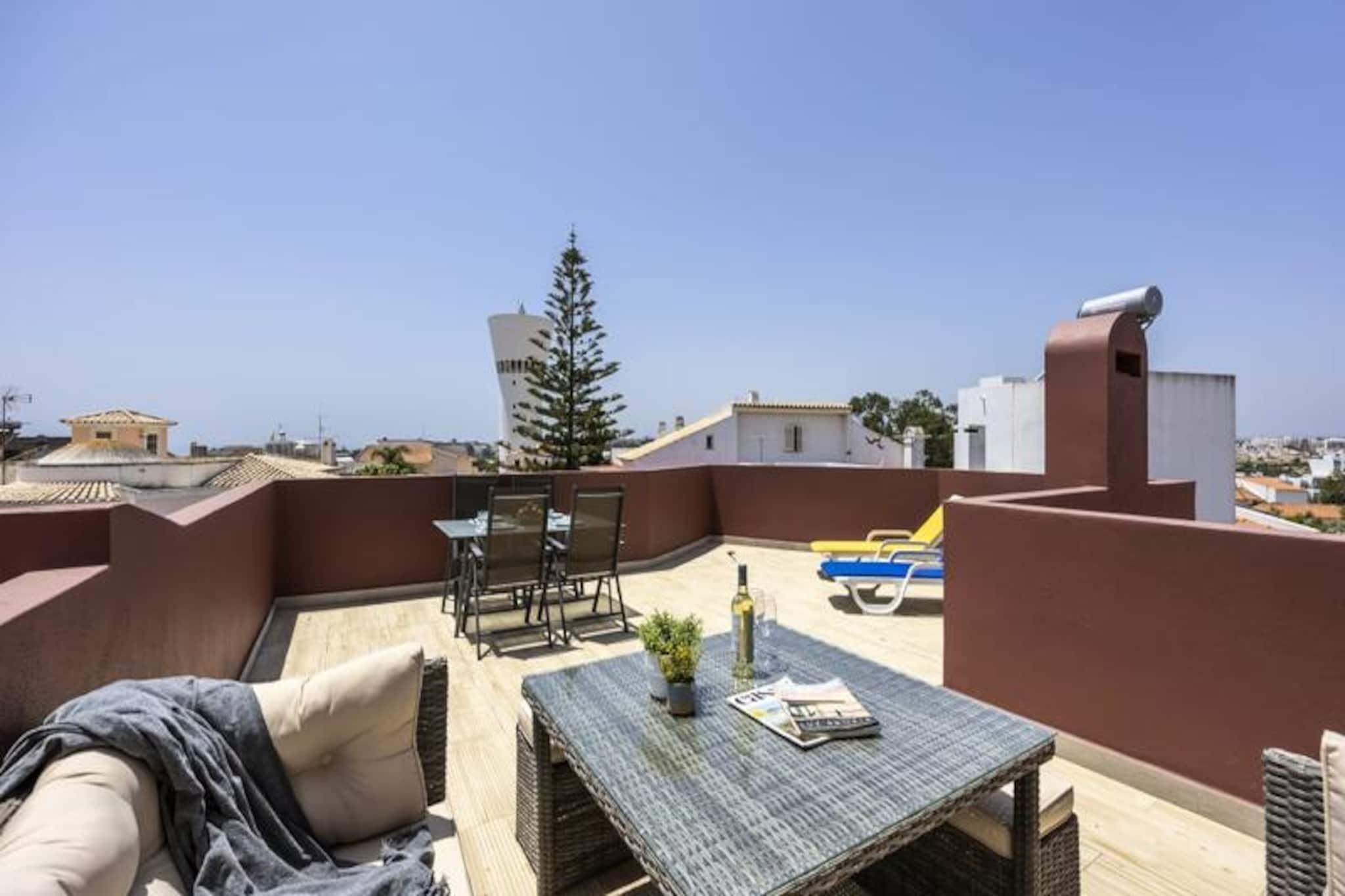Stellen Sie sich vor, Sie wachen vom sanften Rauschen der Wellen auf und betreten Ihre private Dachterrasse mit Panoramablick auf den Atlantik. Dieses elegante Apartment mit zwei Schlafzimmern im Herzen von Portimão bietet die perfekte Kombination aus Komfort, Stil und Küstencharme. Ob romantischer Kurzurlaub oder Familienurlaub – diese Unterkunft macht Ihren Aufenthalt unvergesslich. Im Inneren empfängt Sie ein helles und luftiges Wohnzimmer, ideal zum Entspannen nach einem erlebnisreichen Tag. Die beiden geräumigen Schlafzimmer verfügen jeweils über ein eigenes Badezimmer und bieten so Privatsphäre und Komfort für alle Gäste. Beide Schlafzimmer öffnen sich zu gemütlichen Balkonen, auf denen Sie Ihren Morgenkaffee genießen oder abends bei einem Glas Wein den Tag ausklingen lassen können. Die voll ausgestattete Küche lädt zum Zubereiten köstlicher Mahlzeiten ein, während die zusätzliche Toilette und die Waschmaschine die Praktikabilität der Unterkunft erhöhen. Das absolute Highlight dieser Unterkunft ist zweifellos die 40 m² große Dachterrasse. Ausgestattet mit einem Grill und atemberaubendem Meerblick ist sie der ideale Ort für Mahlzeiten im Freien oder einfach zum Sonnenbaden in der Algarve-Sonne. Mit Klimaanlage in jedem Zimmer, WLAN und Fernseher bietet Ihnen dieses Apartment alle modernen Annehmlichkeiten für einen entspannten Aufenthalt. In ruhiger Lage gelegen, bietet es einen friedlichen Rückzugsort und ist dennoch in der Nähe der lebhaften Attraktionen von Portimão. Erkunden Sie den quirligen Strand Praia da Rocha mit seinen zahlreichen Restaurants, Bars und Geschäften oder schlendern Sie durch die charmante Altstadt. Für Familien sind der beliebte Wasserpark Zoomarine und weitere Wasserparks nur eine kurze Autofahrt entfernt. Ob Sie an den goldenen Stränden entspannen, die atemberaubende Küste entdecken oder die lokale Küche genießen möchten – dieses Apartment ist der perfekte Ausgangspunkt für Ihr Algarve-Abenteuer.