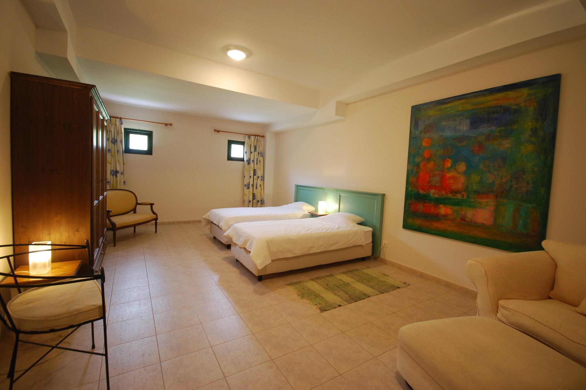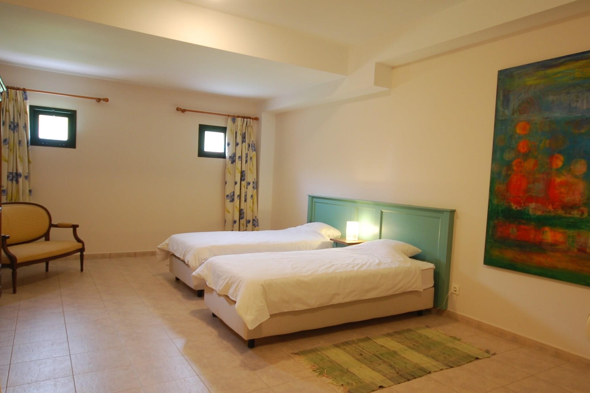 Parterre: (Wohnzimmer(TV(internationale TV-Kanäle), DVD-Spieler, Klimaanlage, Terrasse), Küche(Kochherd, Kaffeemaschine, Backofen, Kühl-/Gefrierkombination, Klimaanlage), Badezimmer(Dusche, Toilette), Terrasse, Gartenmöbel) In der 1. Etage: (Schlafzimmer mit Badezimmer(2x Einzelbett(80 x 200 cm), Badewanne mit Dusche, Toilette, Balkon, Klimaanlage), Schlafzimmer mit Badezimmer(2x Einzelbett(80 x 200 cm), Dusche, Toilette, Balkon, Klimaanlage)) Souterrain: (Schlafzimmer(2x Einzelbett(80 x 200 cm))) Waschmaschine, Klimaanlage, Pool(Gemeinschaftliche Nutzung mit anderen Gästen, Seperates Kinderschwimmbad (Tiefe 50 cm), 10 x 10 m.), Spielgeräte