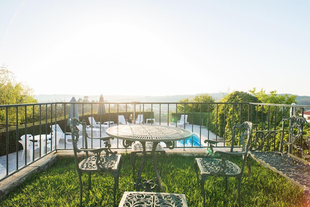 Im Außenbereich besticht das Anwesen durch einen großzügigen 45 m² großen Sonnenbalkon, der einen herrlichen Blick über die Reisfelder bis hin zum Fluss Mondego bietet. Der Außenbereich ist auf Genuss und Erholung ausgelegt und bietet einen saisonalen Swimmingpool, der von Mai bis September zur Verfügung steht. Neben dem Pool gibt es einen Poolraum, in dem Badesachen und Zubehör aufbewahrt werden können, sowie einen Fußballtisch und Tische und Stühle für Mahlzeiten im Freien. Für die Kleinen sorgt ein kleiner Spielplatz unterhalb des Balkons für fröhliche Momente in der Sonne. Ein separater Toilettenraum mit Dusche in der Nähe des Nebengebäudes ist für die Poolbenutzer bequem zu erreichen und macht das Leben im Freien noch angenehmer.