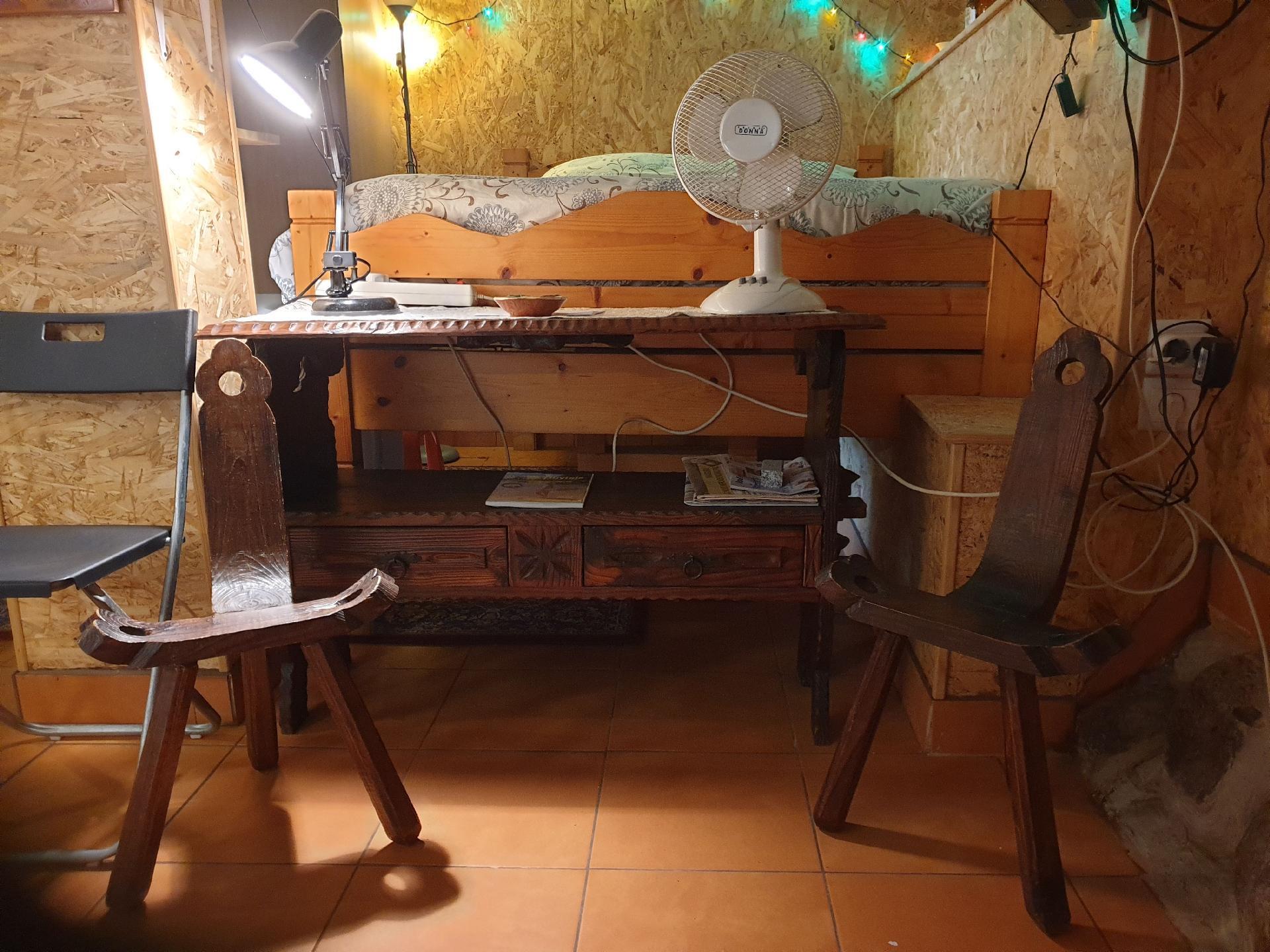 Das Studio befindet sich im Erdgeschoss und ist praktisch eingerichtet, um all Ihre Bedürfnisse zu erfüllen. Obwohl der Raum kompakt ist, ist er mit einer Filter- und einer Kapselkaffeemaschine gut ausgestattet, so dass Kaffeeliebhaber auf ihre Kosten kommen. Ein Geschirrspüler und ein Mini-Backofen sorgen dafür, dass der Komfort von zu Hause nicht weit entfernt ist. Ein Ventilator hält den Raum auch ohne Klimaanlage angenehm kühl. In der Loja ist es übrigens immer kühl, denn sie ist komplett von altmodischen dicken Granitwänden umgeben, durch die kaum Wärme eindringt. Die Wohnung wird außerdem mit Solarstrom betrieben, was zu einem umweltbewussten Aufenthalt beiträgt.