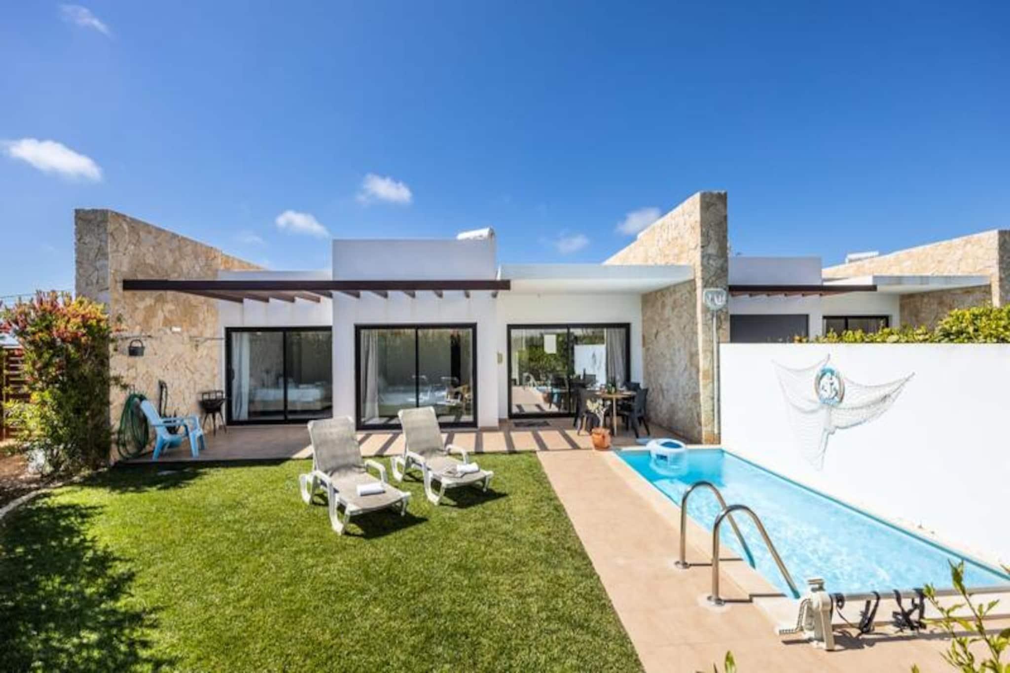 In der ruhigen Küstenstadt Sagres bietet dieses charmante Ferienhaus einen ruhigen Rückzugsort für bis zu vier Gäste. Die Unterkunft liegt ideal am Ortseingang und ist nur eine kurze Autofahrt von den goldenen Sandstränden Martinhal und Tonel entfernt, was sie zu einem idealen Ausgangspunkt für Surfer, Strandliebhaber und Naturfreunde macht. Die natürliche Schönheit der Algarve umgibt Sie und bietet Ihnen eine friedliche Auszeit vom Alltag. Treten Sie ein und entdecken Sie einen hellen und modernen Wohnbereich, der durchdacht für Komfort und Entspannung gestaltet wurde. Das Wohnzimmer verfügt über ein großes Erkerfenster, das den Raum mit Tageslicht durchflutet und einen Blick auf den privaten Garten und den Pool bietet. Ein gemütliches Sofa, Satellitenfernsehen und ein Essbereich schaffen den perfekten Rahmen, um sich nach einem erlebnisreichen Tag zu entspannen. Die offene Küche ist komplett mit modernen Geräten ausgestattet, darunter ein Cerankochfeld, ein Backofen, eine Mikrowelle, ein Geschirrspüler und ein Kühl-/Gefrierschrank, sodass Sie alles haben, was Sie für die Zubereitung köstlicher Mahlzeiten benötigen. Draußen lädt der private Garten dazu ein, die Sonne der Algarve zu genießen. Nehmen Sie ein erfrischendes Bad im Swimmingpool oder entspannen Sie sich auf der nach Südosten ausgerichteten Terrasse mit einem Buch oder einem Glas Wein. Die ruhige Wohnlage sorgt für einen erholsamen Aufenthalt, während die Nähe zu lokalen Annehmlichkeiten und Stränden für zusätzlichen Komfort sorgt. Private Parkplätze sind vorhanden, und für die Erkundung der atemberaubenden Küste und der nahe gelegenen Sehenswürdigkeiten wird ein Mietwagen empfohlen. Ob Sie hier sind, um auf den Wellen zu surfen, die dramatischen Klippen der Algarve zu erkunden oder einfach nur in der Sonne zu entspannen, dieses Ferienhaus bietet die perfekte Mischung aus Komfort und Lage. Mit seinen modernen Annehmlichkeiten und seiner ruhigen Atmosphäre ist es ein Paradies für Familien oder verantwortungsbewusste Erwachsene, die einen unvergesslichen Urlaub in einer der malerischsten Regionen Portugals verbringen möchten.