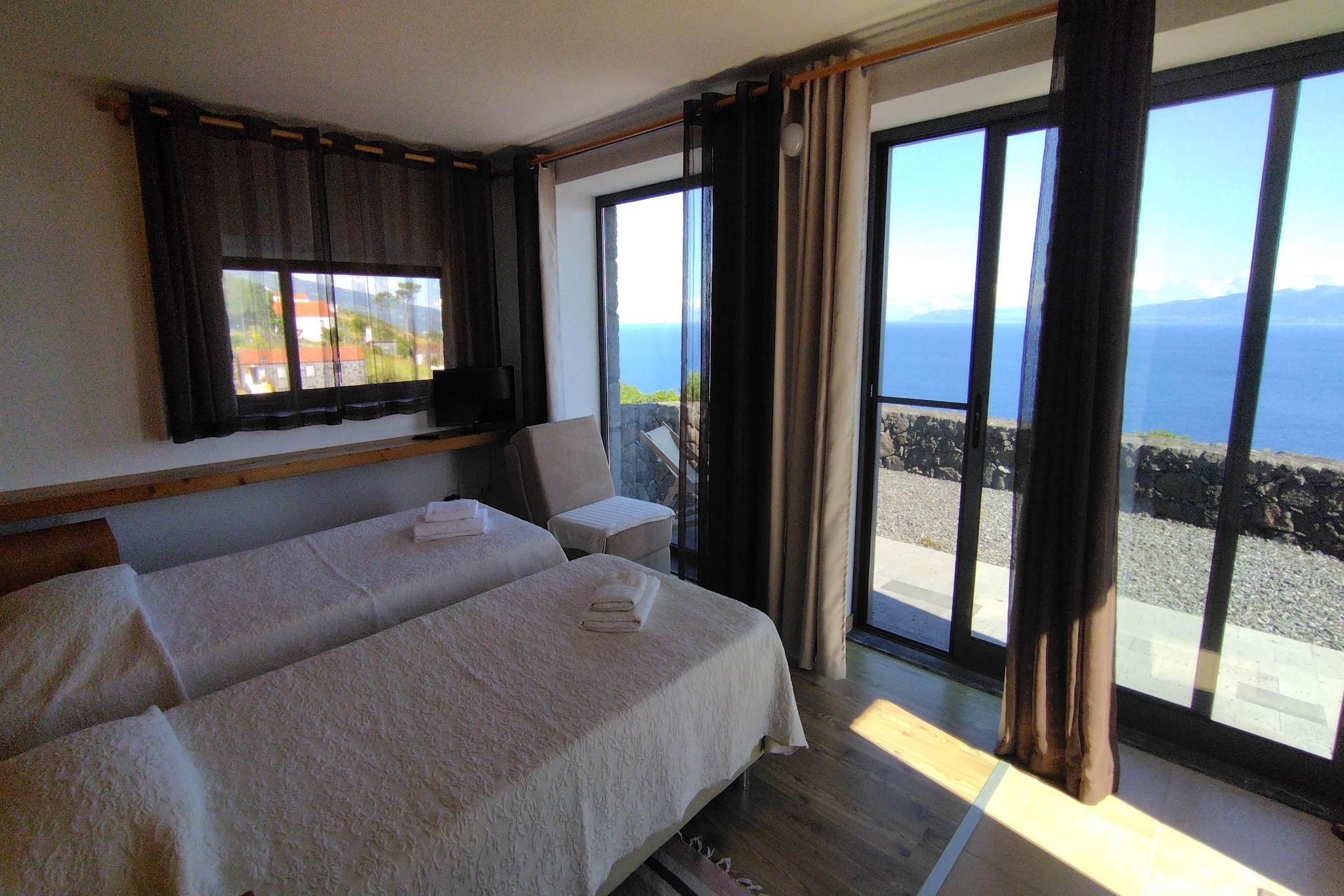 Unvergleichlicher Blick auf den Atlantik und Richtung Nachbarinsel São Jorge: Das hell und modern eingerichtete Studio liegt in einem regionstypischen Steinhaus in ländlicher Umgebung im Nordosten der Azoreninsel Pico. Das Appartement verfügt über eine kleine Terrasse (Erdgeschoss) oder einen Balkon (Obergeschoss) mit Meerblick. Bademöglichkeiten bestehen in 3 km Entfernung. Unternehmen Sie Wanderungen über die zweitgrößte Insel der Azoren und lernen Sie die beeindruckende, vom Vulkanismus geprägte Landschaft kennen. Von Madalena aus können Sie Exkursionen zur Wal- und Delfinbeobachtung oder einen Ausflug nach Faial unternehmen. Hinweis: Mobiles Heizgerät vorhanden.
