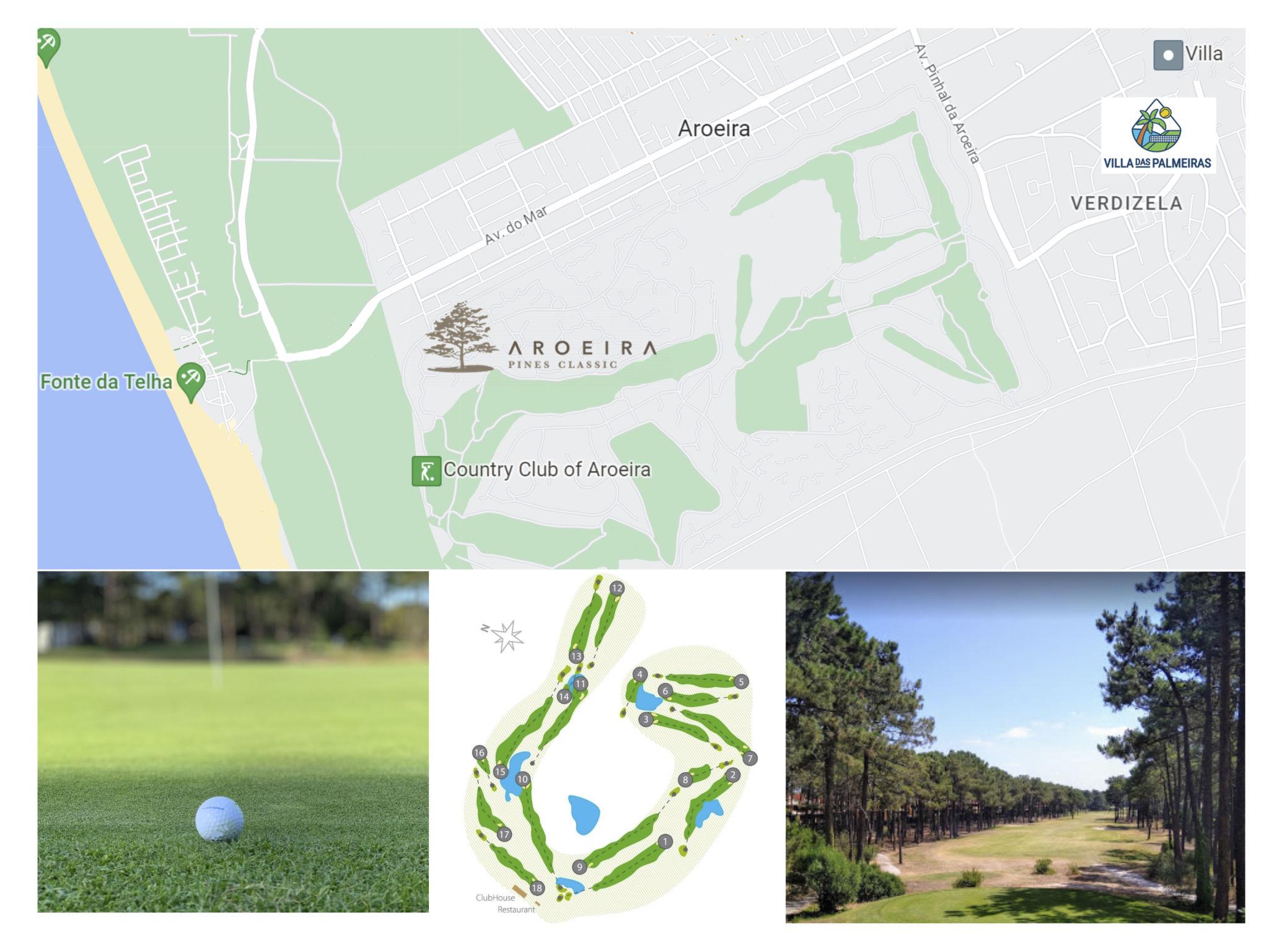 Etwa 3 km entfernt gibt es einen größeren Supermarkt, einige Restaurants und das Aroeira Golf Resort mit zwei 18-Loch-Meisterschaftsgolfplätzen (Aroeira I und Aroeira II), vier Tennisplätzen, einem Spa und einem Gesundheitszentrum, einem gemeinsamen tropischen Swimmingpool, einem Spielplatz, einem Einkaufszentrum, Bars, Snackbars und Restaurants.