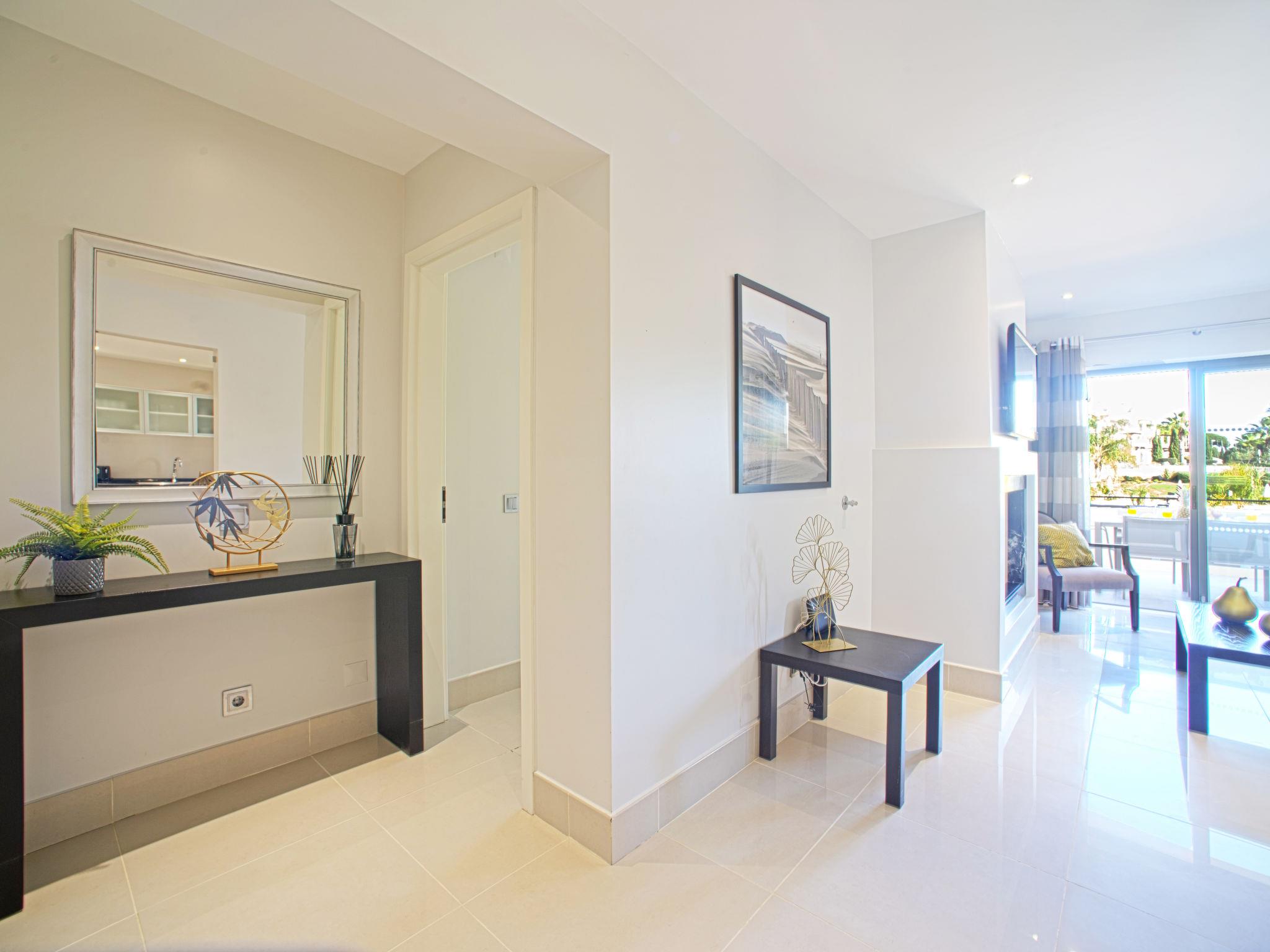 "Pine Hills Esmeralda", 3-Zimmer-Wohnung 114 m2 im 1. Stock. Modern und gemütlich eingerichtet: Wohn-/Esszimmer mit 1 Diwanbett (140 cm, Länge 190 cm), Esstisch, TV, Internationale TV-Sender, Flachbildschirm, Klimaanlage und Warmluftheizung. Ausgang zur Terrasse. 1 Zimmer mit 2 Betten (90 cm, Länge 195 cm), Dusche/WC, Klimaanlage und Warmluftheizung. 1 Zimmer mit 1 franz. Bett (180 cm, Länge 195 cm), Bad/WC, Doppelwaschbecken, Klimaanlage und Warmluftheizung. Ausgang zur Terrasse. Küche (Backofen, Geschirrspüler, 4 Glaskeramikplatten, Mikrowelle, Tiefkühler, elektrische Kaffeemaschine, Kapseln für die Kaffeemaschine (Dolce Gusto Not Incl)). Sep. WC. Terrassenmöbel, Liegestühle (2). Seitliche Sicht auf das Schwimmbad und den Garten. Zur Verfügung: Waschmaschine, Bügeleisen, Kinderhochstuhl, Babybett bis 2 Jahre, Haartrockner. Internet (WLAN, gratis). Parkplatz Nr. L57 (überdacht), Garage. Bitte beachten: geeignet für Familien. Nichtraucher-Unterkunft. Feuerlöscher. 22794/AL