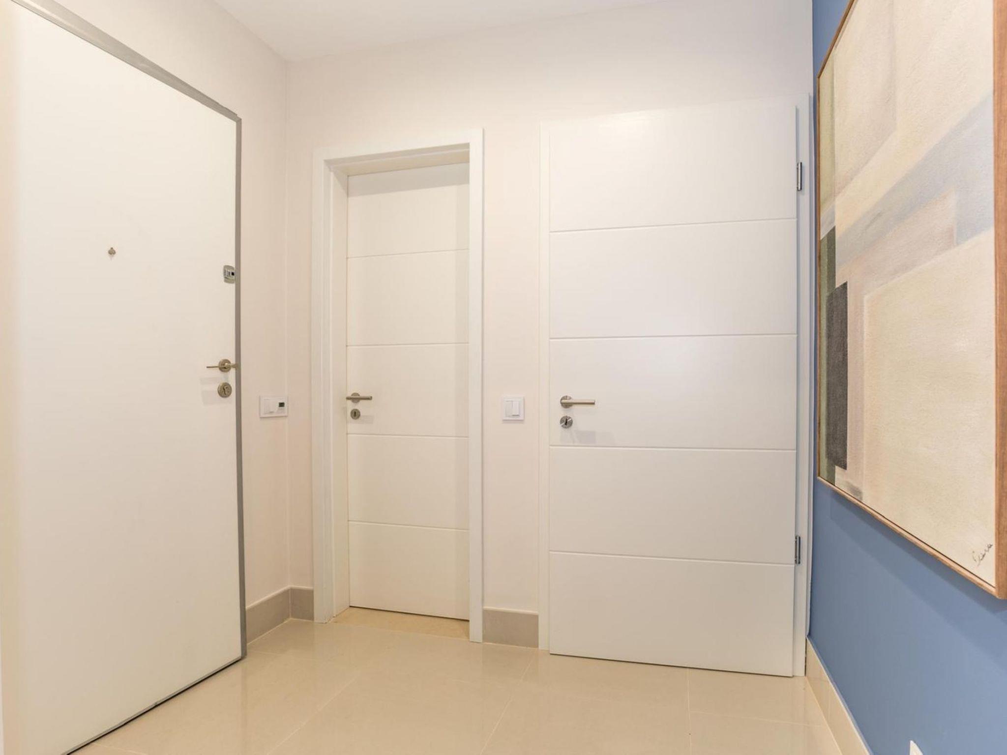 "Pine Hills Reva Santuary Modern Elegance", 3-Zimmer-Wohnung 114 m2. Modern und gemütlich eingerichtet: Wohn-/Esszimmer mit 1 Doppeldiwanbett (140 cm, Länge 190 cm), Esstisch, TV, Internationale TV-Sender, Flachbildschirm, Klimaanlage und Warmluftheizung. Ausgang zur Terrasse. 1 Zimmer mit 1 franz. Bett (200 cm, Länge 220 cm), Bad/WC, Doppelwaschbecken, Klimaanlage und Warmluftheizung. Ausgang zur Terrasse. 1 Zimmer mit 2 Betten (90 cm, Länge 200 cm), Dusche/WC, Klimaanlage und Warmluftheizung. Ausgang zur Terrasse. Küche (Backofen, Geschirrspüler, 4 Glaskeramikplatten, Toaster, Wasserkocher, Mikrowelle, Tiefkühler, elektrische Kaffeemaschine, Kapseln für die Kaffeemaschine (Nespresso (not inc))). Sep. WC. Grosser Gartensitzplatz. Terrassenmöbel. Sicht auf das Schwimmbad. Zur Verfügung: Waschmaschine, Bügeleisen, Kinderhochstuhl, Babybett bis 2 Jahre, Haartrockner. Internet (WLAN, gratis). Bitte beachten: geeignet für Familien. Nichtraucher-Unterkunft. Feuerlöscher. 164869/AL