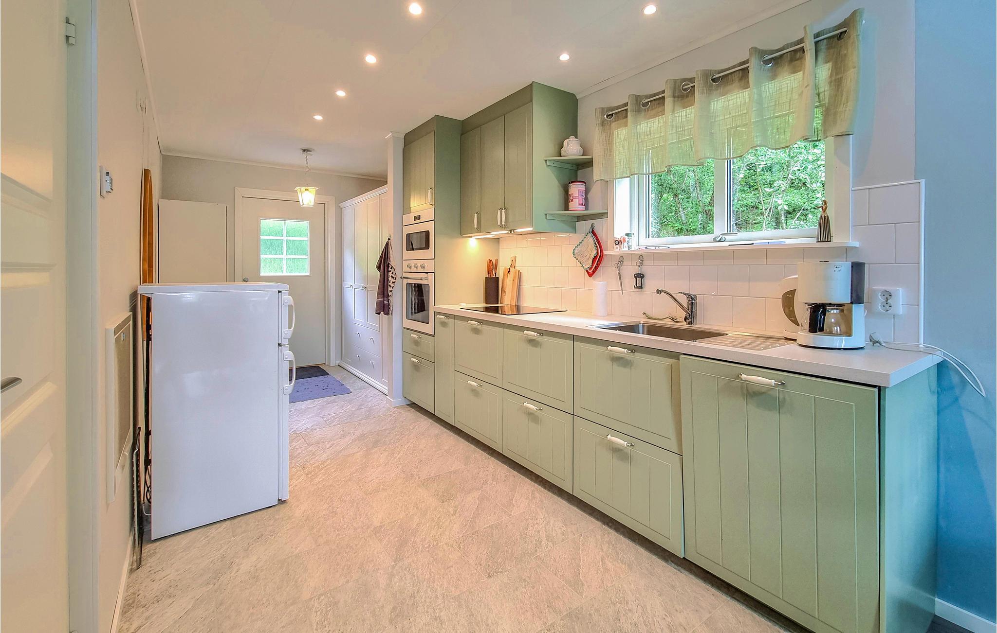 Genießen Sie einen wunderschönen Natururlaub in diesem hellen Haus mit dezenten Farben und hoher Decke. Das Herz des Hauses ist der offene Wohnraum, der mehrere Funktionen verbindet und zum geselligen Beisammensein einlädt. Auch wenn Sie in der Küche stehen, können Sie an den Gesprächen auf dem Sofa oder am Esstisch teilnehmen und gemeinsame Zeit verbringen. Machen Sie es sich auf der Terrasse gemütlich, während Ihre Kinder im großen Garten herumtollen und beginnen Sie den Tag mit einem erfrischenden Bad im See.