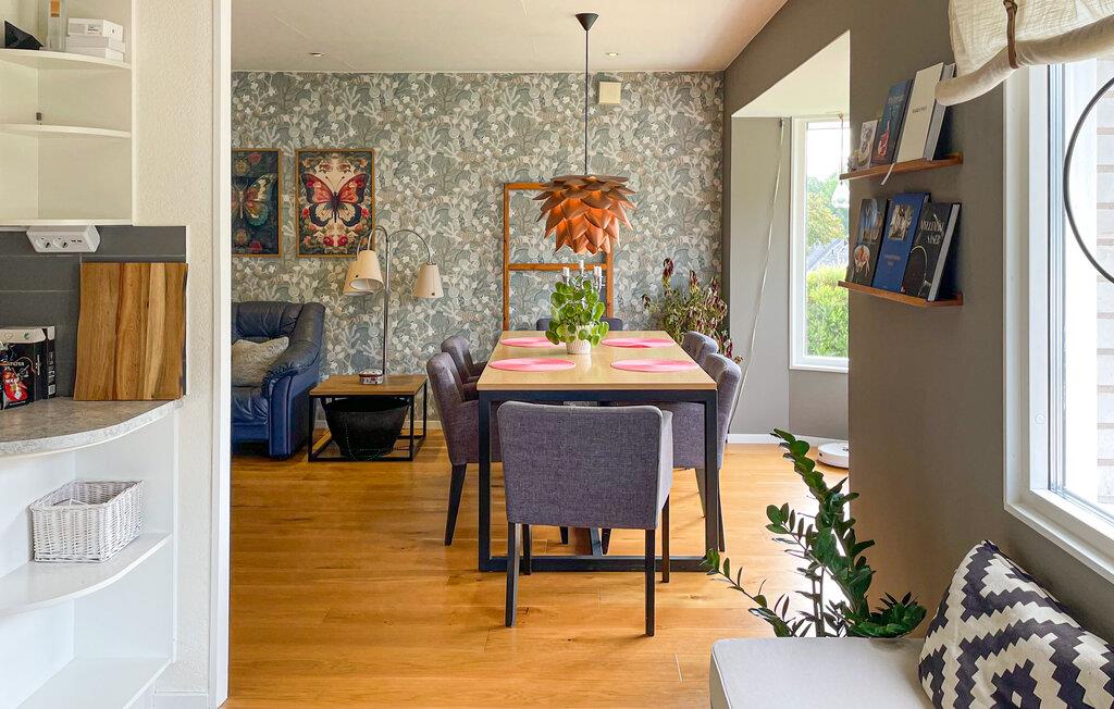 Dieses geräumige Ferienhaus heißt Sie mit einer liebevollen, individuellen Einrichtung willkommen, in der Sie bei gemeinsamen Stunden mit Ihren Liebsten eine warme Behaglichkeit genießen. Zaubern Sie hier Ihre Lieblingsgerichte, planen Sie Ihre Unternehmungen am einladenden Esstisch und machen Sie es sich nach einem langen Tag an der frischen Luft mit einem Film auf dem Sofa gemütlich.