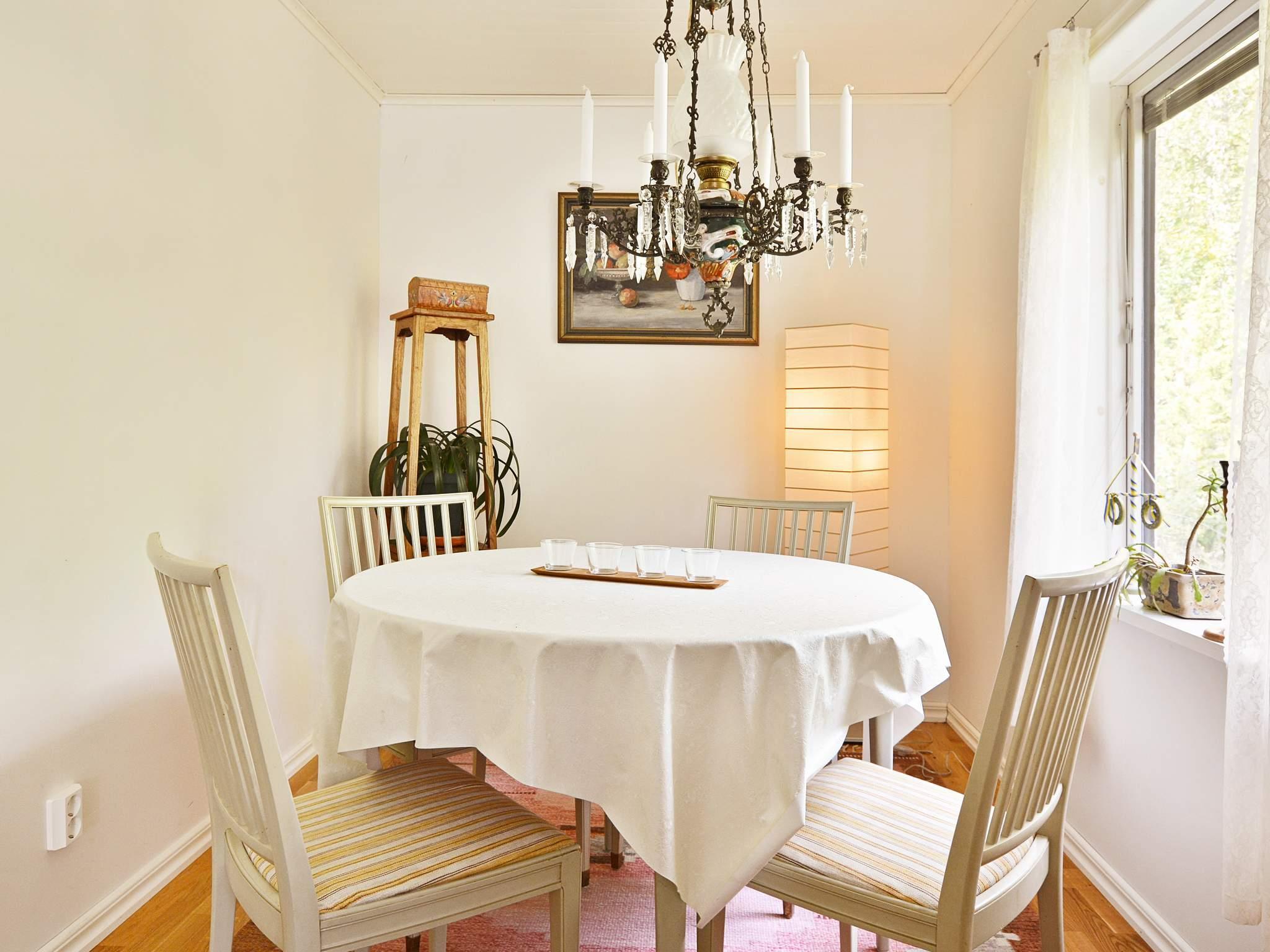 Nur 100 m vom Seeufer des Kjälken liegt in erhöhter Lage dieses wohnliche Ferienhaus. Eine ruhige Ferienunterkunft mit Veranda und Blick in die Natur.