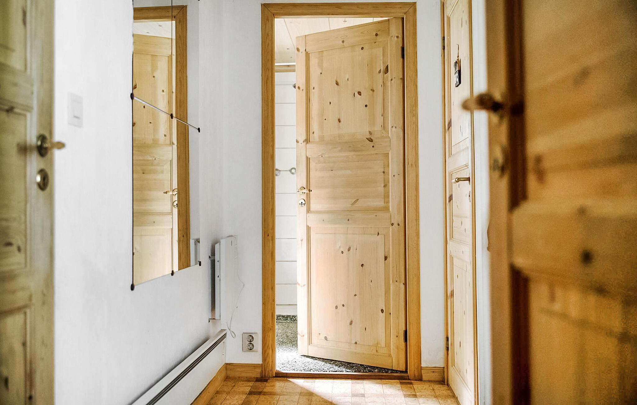 Genießen Sie einen Urlaub voller Ruhe, Natur und schwedischer Gemütlichkeit in diesem liebevoll eingerichteten Ferienhaus. Das traditionelle Holzhaus liegt in traumhafter Lage, umgeben von Wäldern, Wiesen und Seen. Entspannen Sie im großzügigen Wohnzimmer auf dem bequemen Sofa oder genießen Sie den Blick ins Grüne bei einem knisternden Feuer im Steinkamin. In der Küche mit Holzelementen und viel Licht können Sie gemeinsam kochen und am großen Esstisch gemütliche Mahlzeiten genießen. Nach einem aktiven Tag in der Natur lädt die private Sauna zu wohltuender Entspannung ein.
