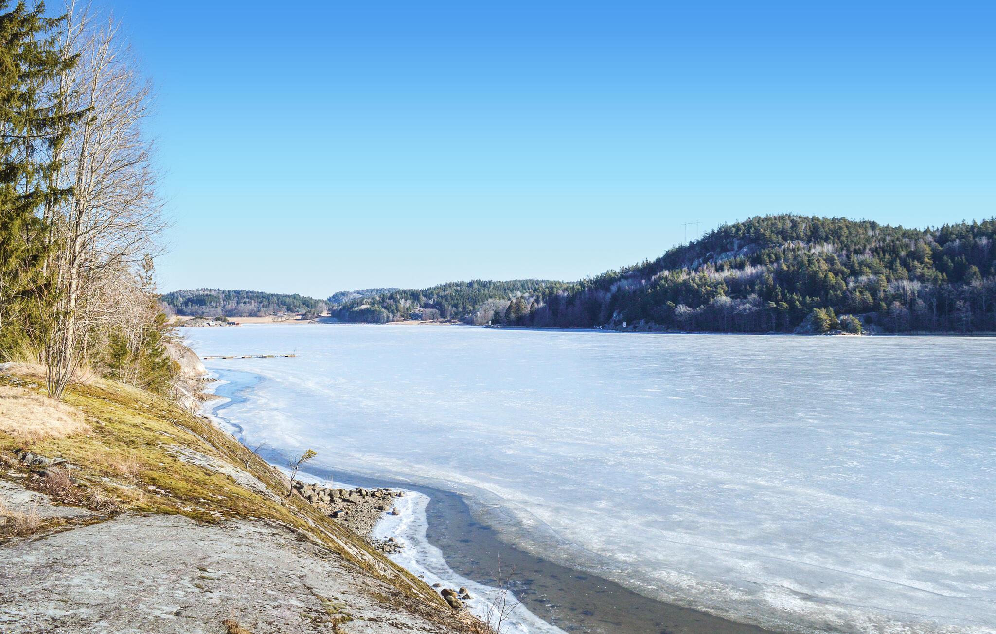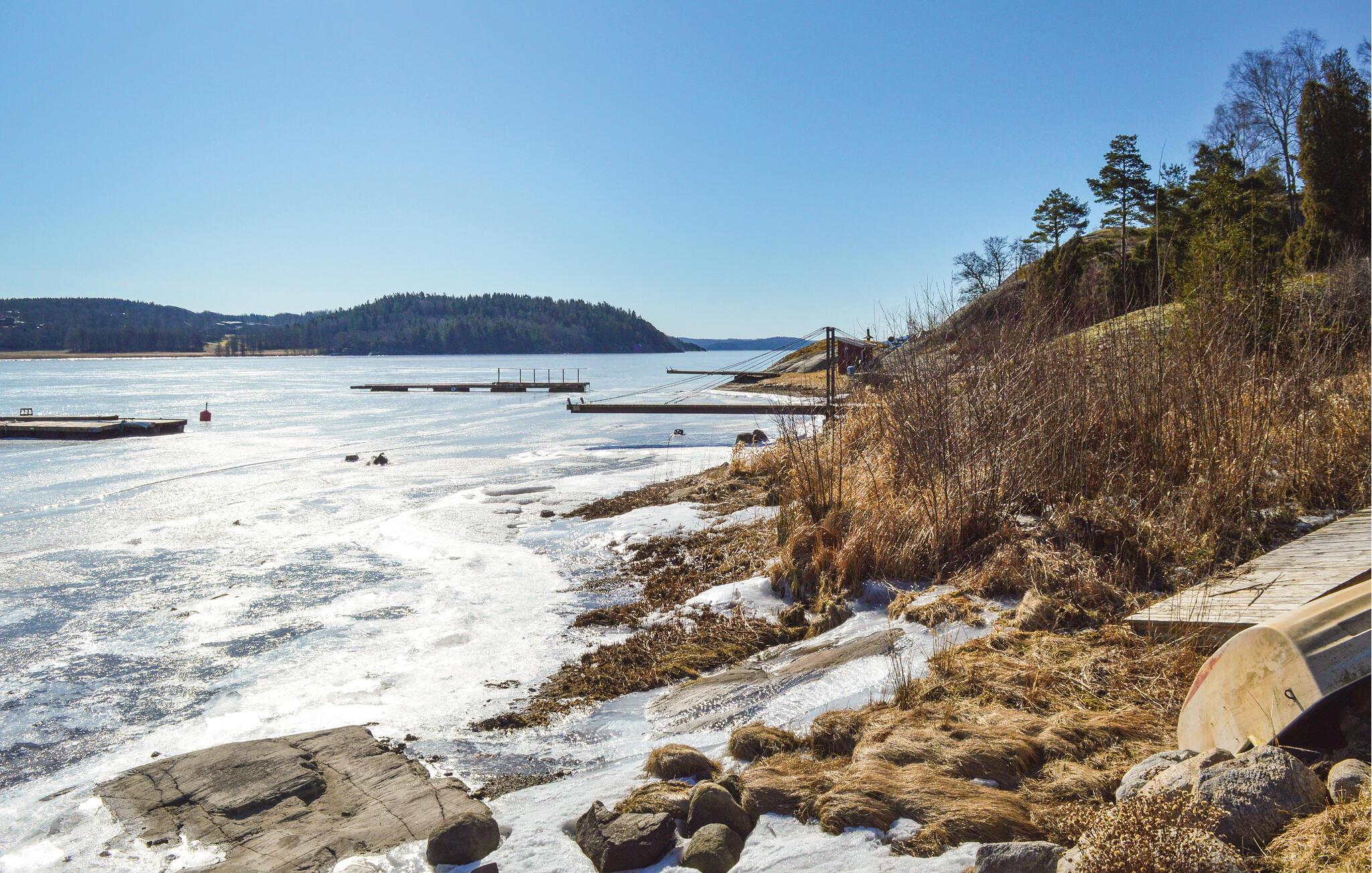 Von den Fenstern und der Terrasse bietet sich Panoramaaussicht. Sie spazieren hier zur Badebrücke und ans Ufer zum Baden und Sonnen. Das kleine Ruderboot kann zum Angeln oder einer Rudertour in nahe gelegene Kurbad Vann benutzt werden (ab dem 1. Juni). Dort bietet es sich ein Eis oder ein Mahlzeit einzunehmen.