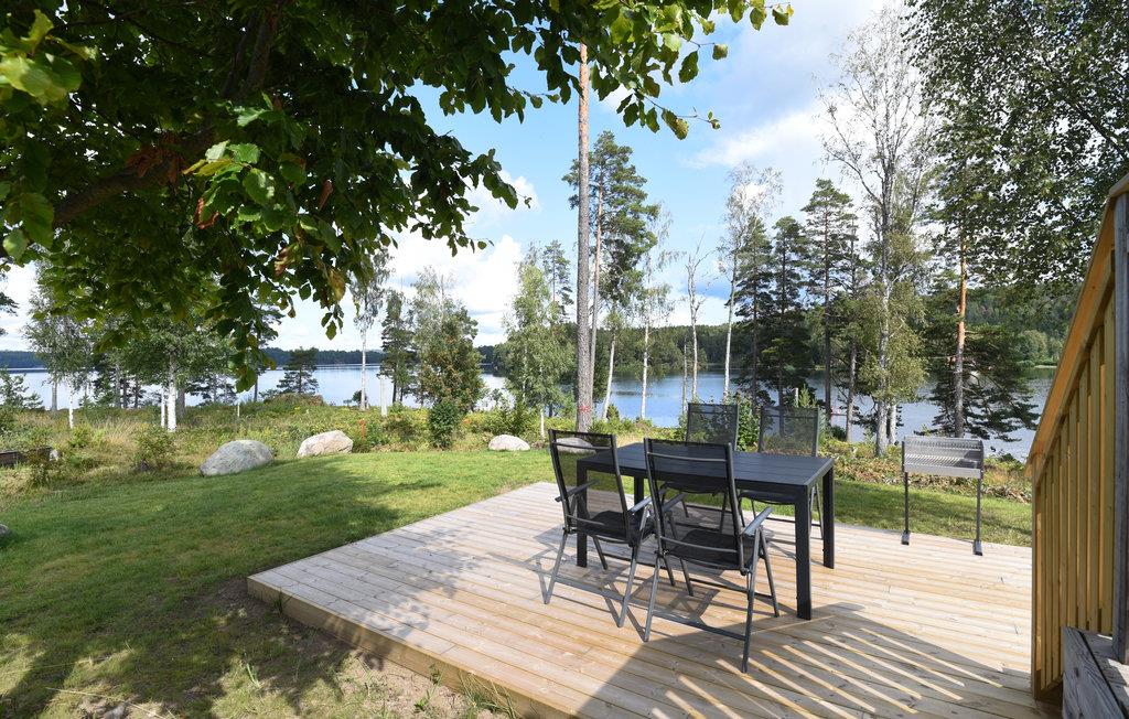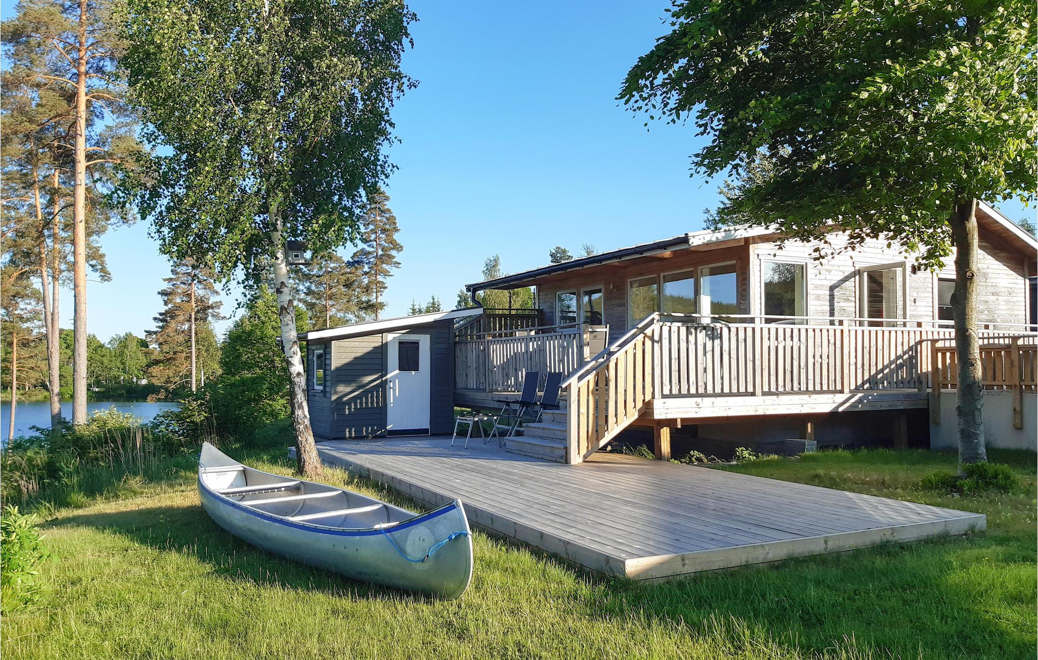 Das schöne Haus ist aus Naturmaterialien gebaut und mit Lärchenholz, ganz ohne Chemikalien, verkleidet. Das Haus hat einen offenen Grundriss, der den Innenräumen eine Geräumigkeit verleiht. Das Haus verfügt über 1 Schlafzimmer mit bequemen Betten und im Wohnzimmer befindet sich ein Schlafsofa. Es gibt ein geräumiges Badezimmer mit Waschmaschine. Das Haus verfügt über eine gut ausgestattete Terrasse für gemütliche Grillabende. Vor Ort können Sie das Kanu des Hauses mit passendem Zubehör für Ausflüge nutzen.