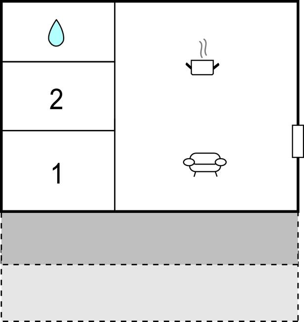 Badezimmer (nr. 1) - WC. Warmes und kaltes Wasser. Dusche