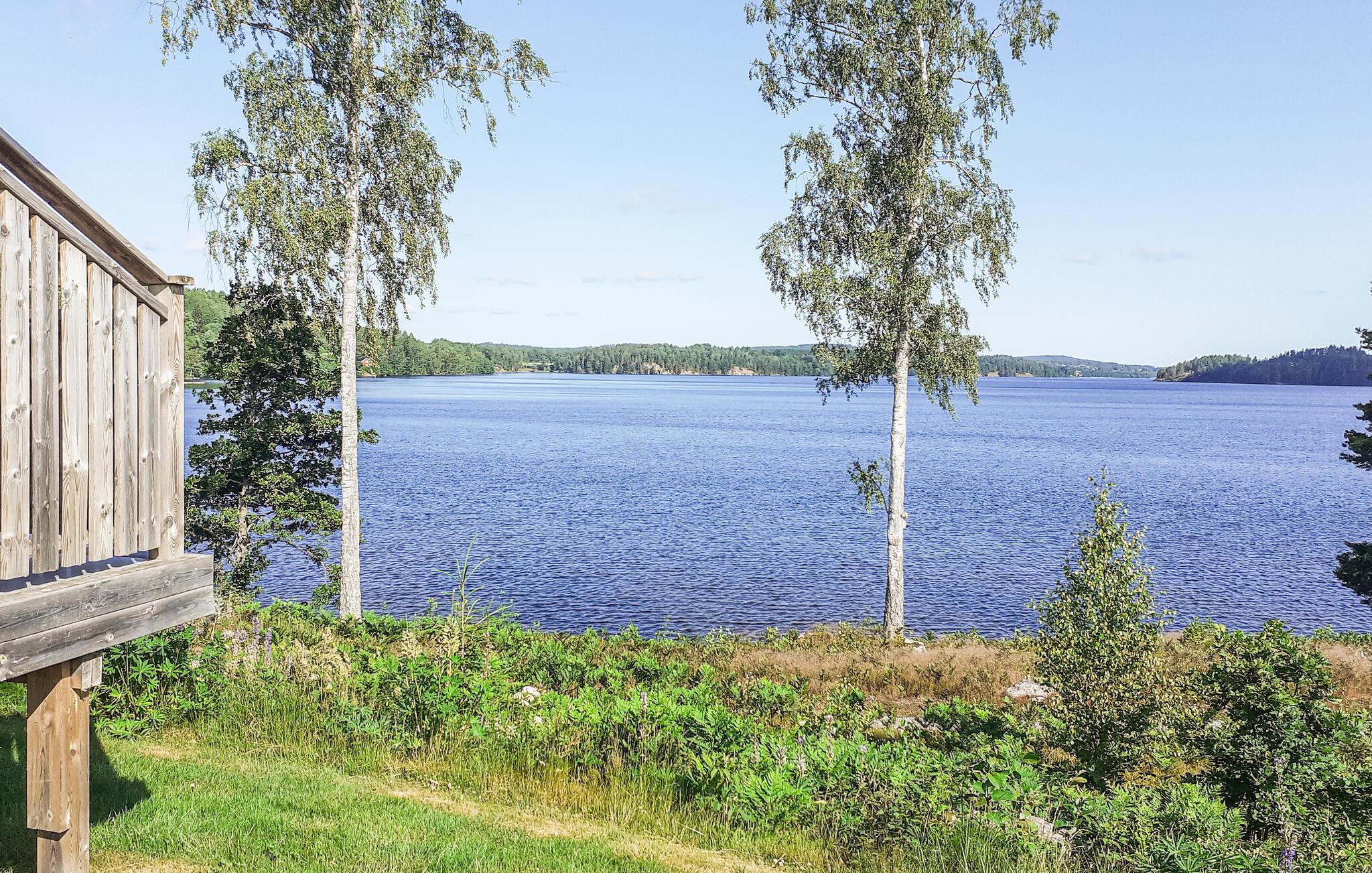 Feines Ferienhaus mit zwei Schlafzimmern, schönen Betten und gelegen in einer Hüttensiedlung. Von der Terrasse haben Sie Panoramaaussicht auf den See Laxsjön und den Dalsland-Kanal. In der Nähe befinden sich das Aktivitätscenter mit Elchpark und Kronwild. Dalsland hat über 100 Wasserläufe, wo Sie mit der Rute angeln können. Hier finden Sie exzellente Bedingungen für Ausflüge mit einem Paddel in der Hand. Es wird auch eine Bibersafari angeboten, mit Glück sehen Sie ein Tier in seiner natürlichen Umgebung. Auch Interessierte an Handwerk und Kunst werden hier fündig. Dals Långend liegt am Kanal, der u. a. die Seen Råvarpen im Süden und den See Laxsjön im Norden verbindet.