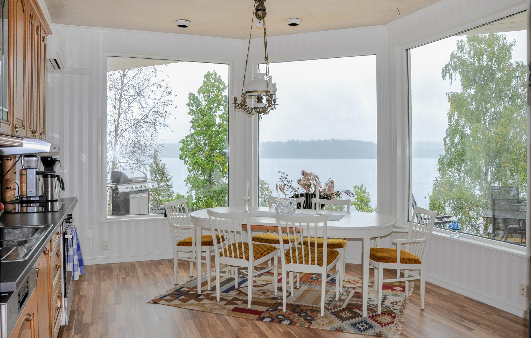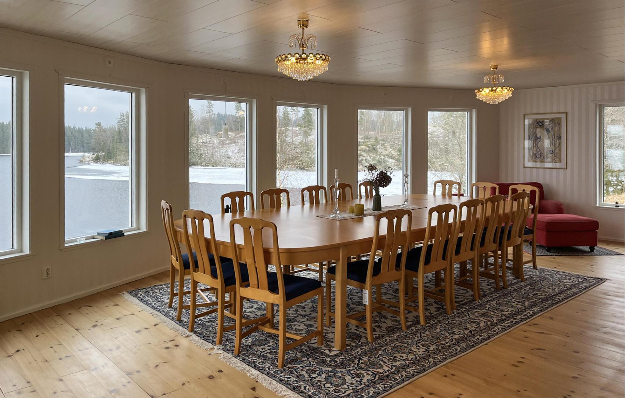 Verleben Sie schöne Tage an diesem Ort der Ruhe, nur wenige Schritte vom See. Das großräumige Haus am Seeufer empfängt Sie mit Charme und Atmosphäre. Im Inneren beeindruckt das Haus mit seinem großen, lichtdurchfluteten Speisesaal, der einen wunderbaren Panoramablick auf den See verspricht. Hier ist Platz für die große Familie oder eine Gruppe von Freunden. Die Essküche ist ebenfalls in Tageslicht getaucht und von hier aus gelangen Sie auf die große Terrasse, wo Sie morgens schön frühstücken und abends den Sonnenuntergang genießen können. Sie haben auch die Möglichkeit, Ihre Mahlzeiten des Tages direkt auf den Steg zu verlegen. So haben Sie auch Ihre spielenden Kinder im Wasser jederzeit im Blick. Angler können auch Ihr Glück versuchen. Kanu und Ruderboot stehen Ihnen kostenlos zur Verfügung.