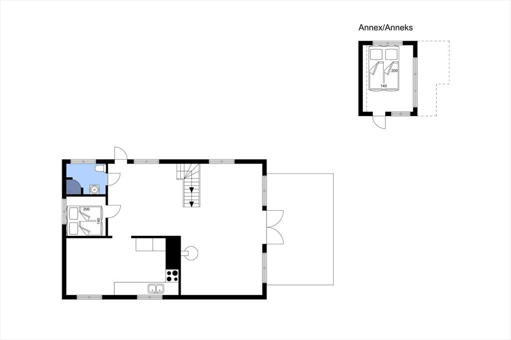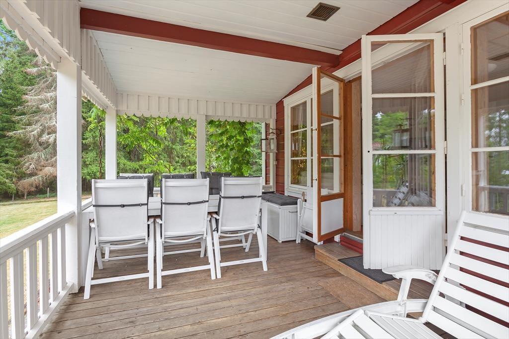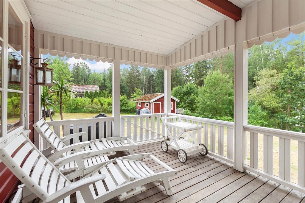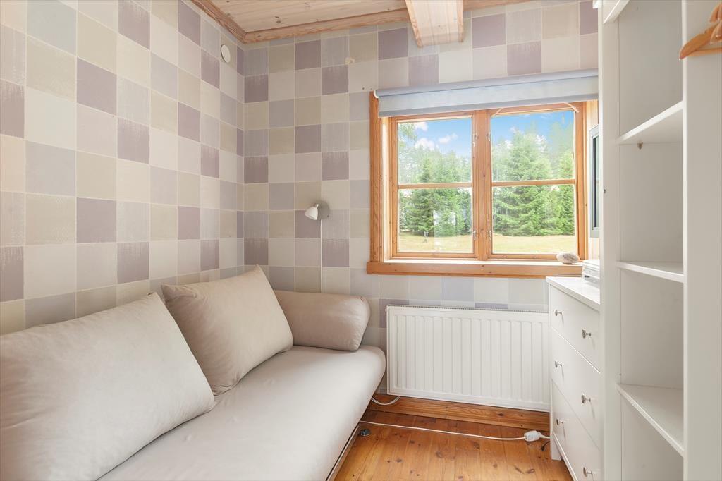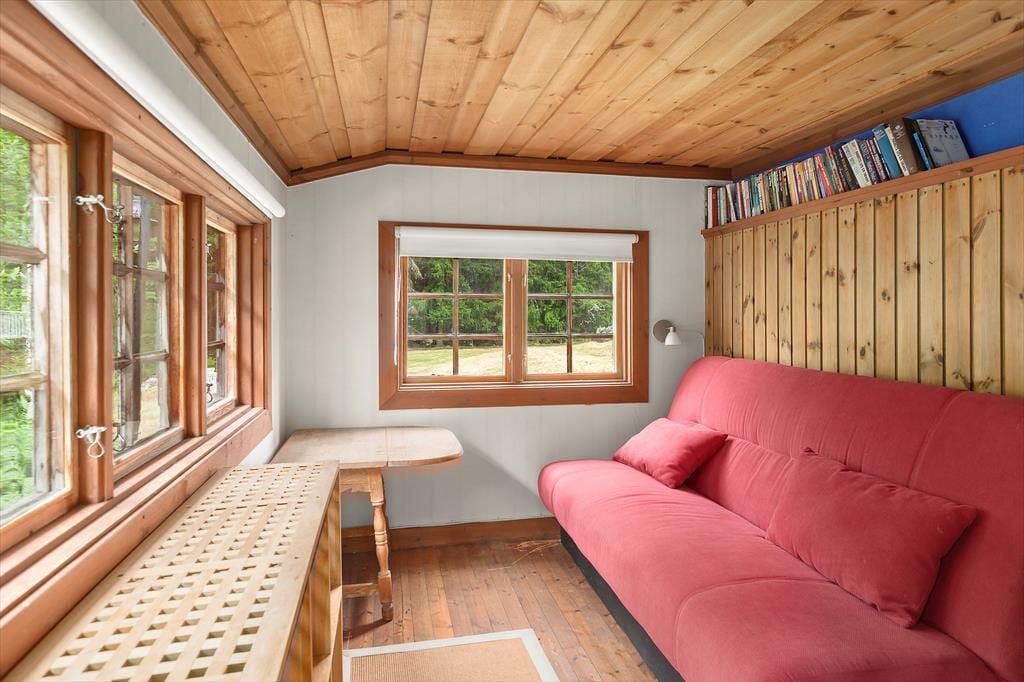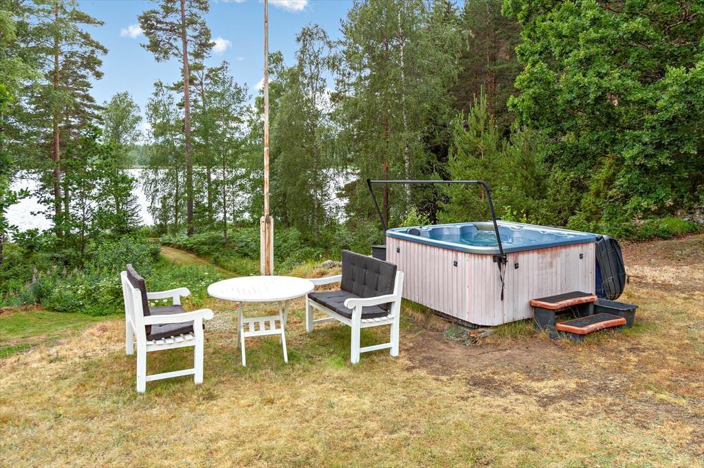 Das kleine, nicht winterfeste Nebengebäude ist mit einer Schlafcouch möbliert und bietet ausschließlich in der warmen Jahreszeit den siebten Schlafplatz. Im Außenbereich befinden sich eine schöne, zum See ausgerichtete, mit Sommermöbeln ausgestattete, überdachte Veranda sowie zwei Feuerstellen mit Sitzplätzen, Filetiertisch und Webergrill. Am Bootssteg mit Tisch und Sitzbank liegen außerdem ein Ruderboot und ein Kanu für die Gäste bereit. Und nicht zu vergessen der große Außenwhirlpool, in dem man am Abend den Ausblick auf den See genießen kann.