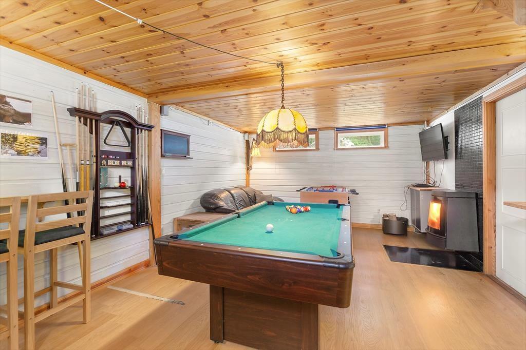 Das auf einem knapp 5.000 m² großen Seegrundstück erbaute, 2004 gründlich renovierte, unterkellerte Ferienhaus mit einer Wohnfläche von etwa 170 m² bietet bis zu 7 Urlaubsgästen Platz. Im Erdgeschoß des Hauses befinden sich ein geräumiger Wohnbereich mit integriertem Essplatz, Kamin und SAT-TV (deutsche Programme), eine Küche mit allen modernen Annehmlichkeiten wie Elektroherd, Kühlschrank, große Gefriertruhe, Mikrowelle, Geschirrspüler, Kaffeemaschine und einer kleinen Essecke für vier Personen sowie ein Schlafzimmer mit einer Doppelschlafcouch und ein Duschbad mit Handwaschbecken und WC. Im Obergeschoß des Hauses, in dem durchgehend eine angenehme Fußbodenheizung installiert wurde, befinden sich zwei weitere, jeweils mit Doppelbetten, Fernseher und DVD-Player möblierte Schlafzimmer. Von einem der Zimmer aus hat man einen sehr schönen Blick auf den See. Das ebenfalls im Obergeschoß liegende große Badezimmer verfügt neben WC, Waschbecken und Dusche auch über eine große Holzbadewanne. Im Kellergeschoß findet man darüber hinaus alles, was man an einem kühlen, regnerischen Tag oder nach Lust und Laune nutzen kann: Billardtisch, Tischfußball sowie eine Dartscheibe, einen Fitnessraum sowie eine Waschküche mit Waschmaschine und Wäschetrockner. Das Haus wird mit einer Luft-Wärmepumpe beheizt und den Gästen steht ein Internetzugang mittels WLAN zur Verfügung.