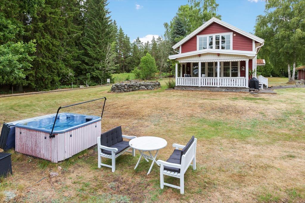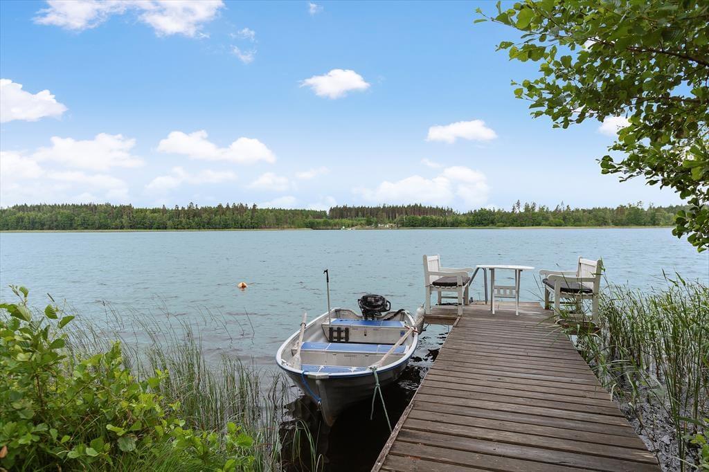 Etwa mittig zwischen den Städten Jönköping und Vimmerby, knapp 20 km südöstlich des für seine einzigartige Holzhausarchitektur bekannten, pittoresken Eksjö, liegt dieses schöne Ferienhaus zusammen mit zwei weiteren, dauerhaft bewohnten Häusern nur wenige Meter vom langgezogenen See Skedesjön entfernt, der unweit südlich des Hauses eine direkte Verbindung zum großen See Mycklaflon hat. Hier finden nicht nur passionierte Angler ihr Urlaubsparadies, auch das Baden vom Grundstück mit eigenem Boots- und Badesteg lässt keine Ferienwünsche offen. Über verschiedene Ebenen mit Außenwhirlpool und Grillecken erstreckt sich das Grundstück bis an das Ufer des fischreichen Sees Skedesjön. An der eigenen Badebrücke liegt ein Alu-Ruderboot und ein Kanu bereit. Zum Einkaufen fährt man in das etwa 9 km entfernte Hult oder in die großen Supermärkte in Eksjö, wo zahlreiche gute Restaurants einen Besuch lohnen und man an Geldautomaten die Urlaubskasse auffüllen kann.