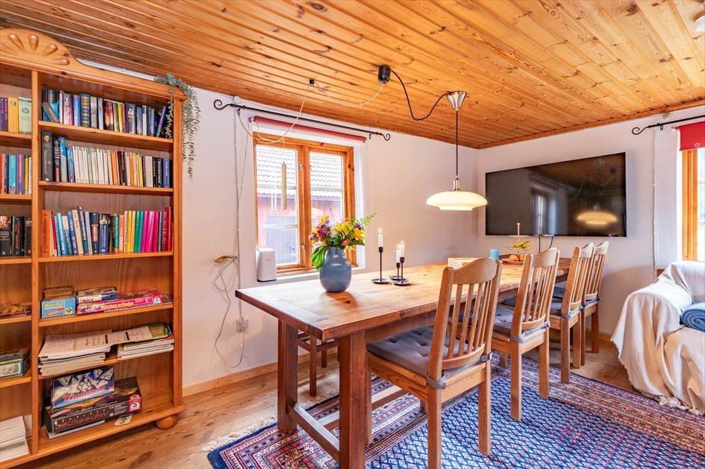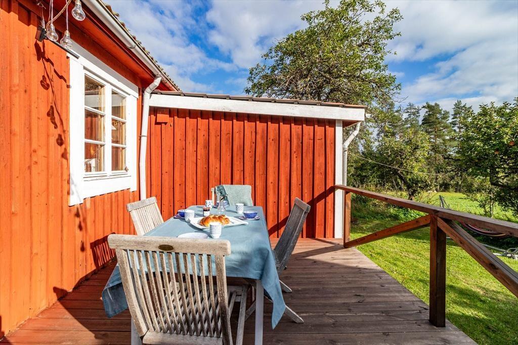 Dieses wunderschöne rote Holzhaus von 1909 könnte direkt aus einer Astrid-Lindgren-Geschichte stammen. Es steht in Alleinlage südlich von Mariannelund in Småland mitten in der Natur umringt von Feldern und Wald auf einem 1.017 m² großen Naturgrundstück. Mit etwas Glück bekommst du sogar einen Elch zu sehen. Die Stadt Vimmerby mit dem Themenpark "Astrid-Lindgrens-Värld" und dem Elternhaus der Autorin ist nur etwa 30 Minuten entfernt. Ein öffentlicher und kinderfreundlicher Badeplatz liegt am etwa 8 km entfernten See Bellen, an dem auch das im Mietpreis enthaltene Ruderboot liegt. Zu diesem kann ein Elektromotor für 50 € pro Woche gemietet werden. Auch ein Kanu gibt es; Dieses liegt 5,5 km entfernt am See Enegrenen. Der Hof der deutschsprachigen Eigner liegt etwa 1 km entfernt. Diese verkaufen je nach Saison Eier, frischgebackenes Brot und verschiedene Gemüsesorten. Die Eigner liefern dir auf Bestellung sogar einen Frühstückskorb mit frischen Brötchen, Wurst, Käse, selbstgemachter Marmelade, Honig, Nutella, Eiern, Orangensaft und selbstgemachtem Joghurt (12,50 € pro Person, Kleinkind gratis).