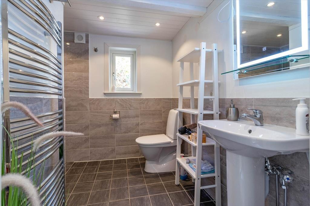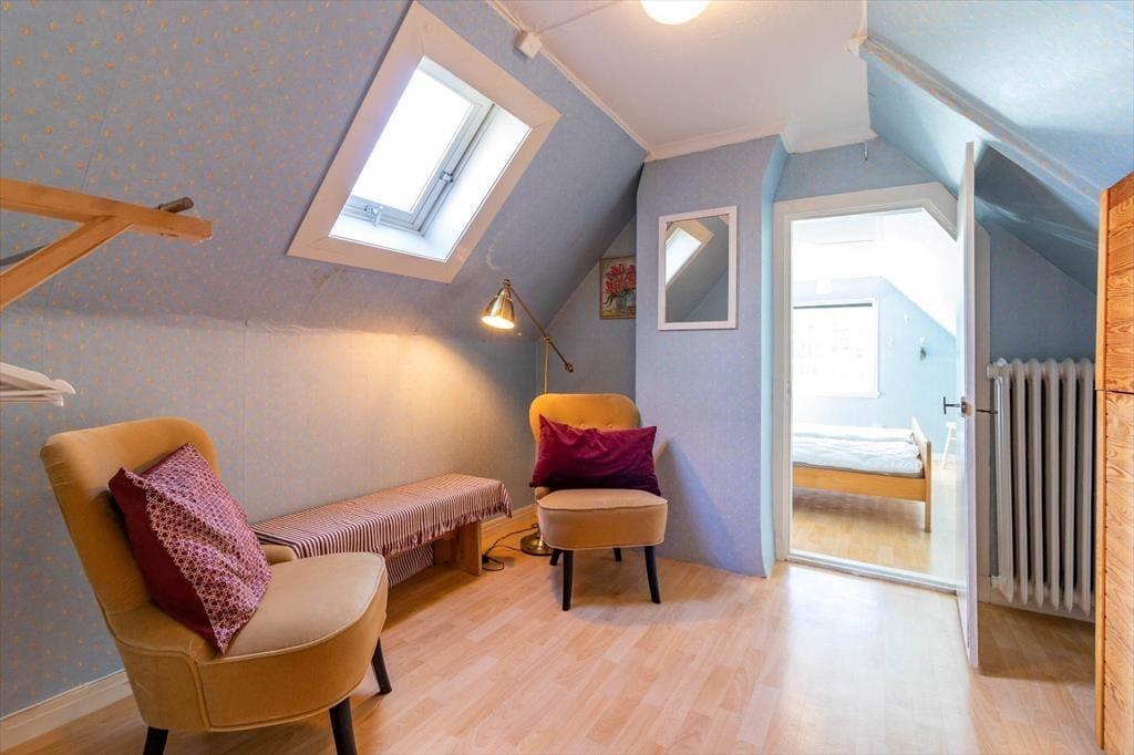 Das Ferienhaus bietet auf etwa 65 m² Platz für bis zu 4 Personen. Es verfügt über ein Wohnzimmer mit Sofas, Kamin, TV (deutsche Programme), Blu-Ray-Player, Radio und Internet. Das Esszimmer ist offen mit dem Wohnzimmer verbunden. Die Küche ist mit einem 3-Platten-Herd, Backofen, Dunstabzugshaube, Kühl- und Gefrierkombination sowie Kaffeemaschine ausgestattet. Neben der Küche liegt das renovierte Badezimmer mit Dusche und WC. Über eine Treppe gelangst du ins Obergeschoss zu den beiden Schlafzimmern, die jeweils mit einem Doppelbett (ein breites mit 2 x 90 x 200 cm sowie ein schmaleres mit 140 x 200 cm) eingerichtet sind. Zwischen den Schlafzimmern befindet sich ein Raum mit Schränken und ausreichend Platz für deine Garderobe. Du kannst 2 Erwachsenen- und 2 Kinderfahrräder sowie zwei kleine Tretroller auf Anfrage kostenlos benutzen. Die Fahrräder und Roller stehen auch Gästen des Ferienhauses Villa Hornsved zur Verfügung. Die Nutzung muss daher abgesprochen werden. Zusätzlich kannst du auf dem Grundstück einen kleinen Spielplatz, ein Trampolin und einen Grillplatz mitbenutzen.