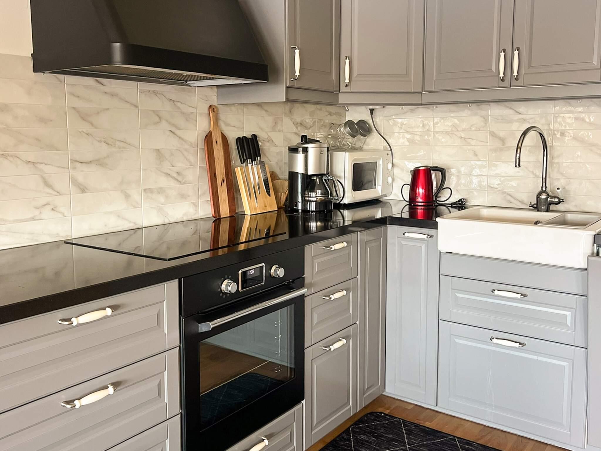 Das Haus verfügt über ein großes, kombiniertes Wohnzimmer, eine Küche und ein Esszimmer mit hohen Decken und derselben herrlichen Aussicht. Es gibt drei Schlafzimmer mit jeweils einem Doppelbett. Daher eignet sich dieses Haus sowohl für drei gemeinsam reisende Paare als auch für eine Familie.