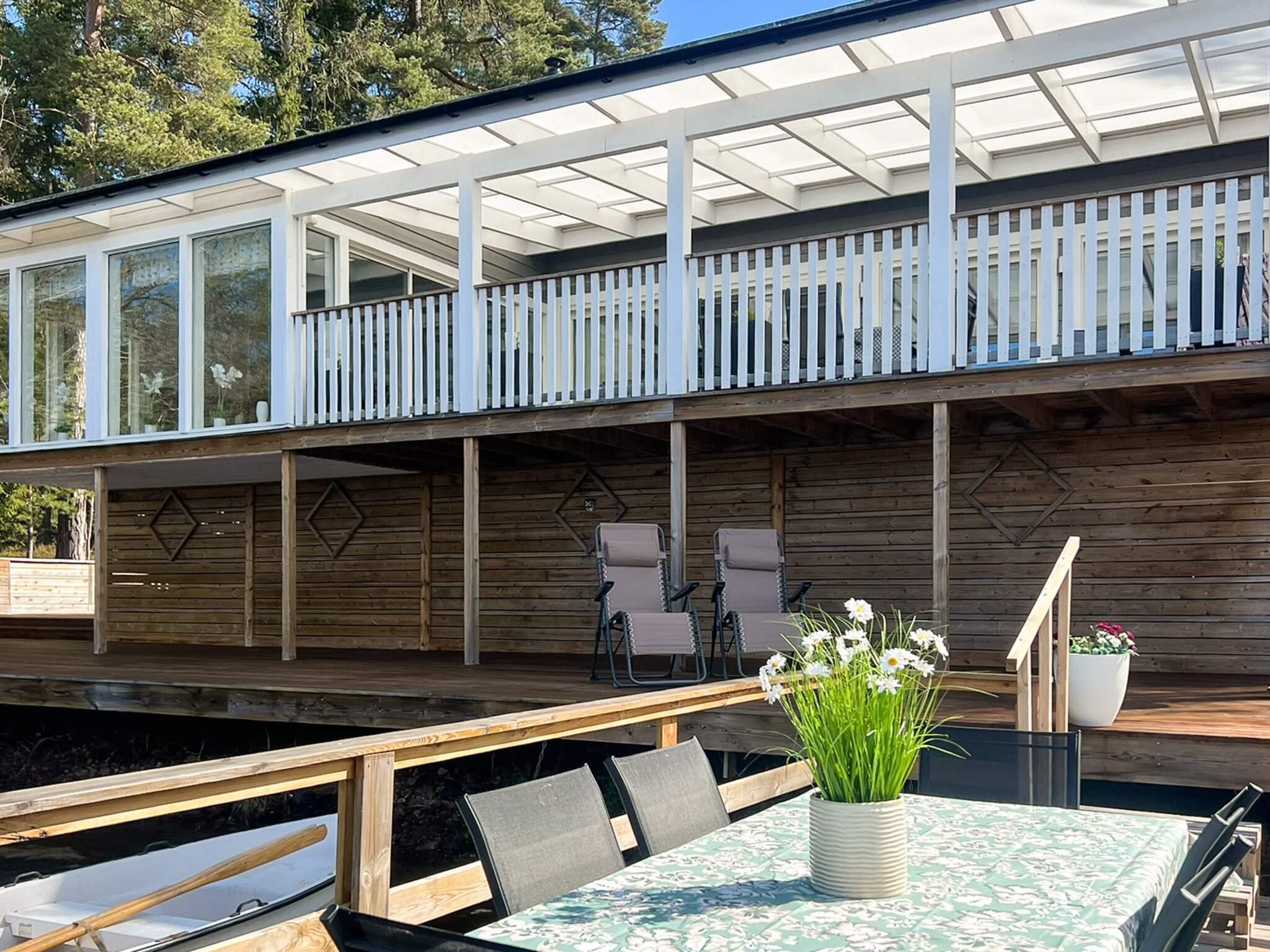 Die obere Terrasse bietet überdachte Sitzplätze und eine verglaste Veranda. So sitzen Sie hier bei jedem Wetter in der ersten Reihe und genießen den herrlichen See und die Aussicht. Damit Sie die schöne Aussicht nicht verpassen, befindet sich auf der verglasten Veranda eine zweite Küche. So können Sie kochen und gleichzeitig gesellig sein.