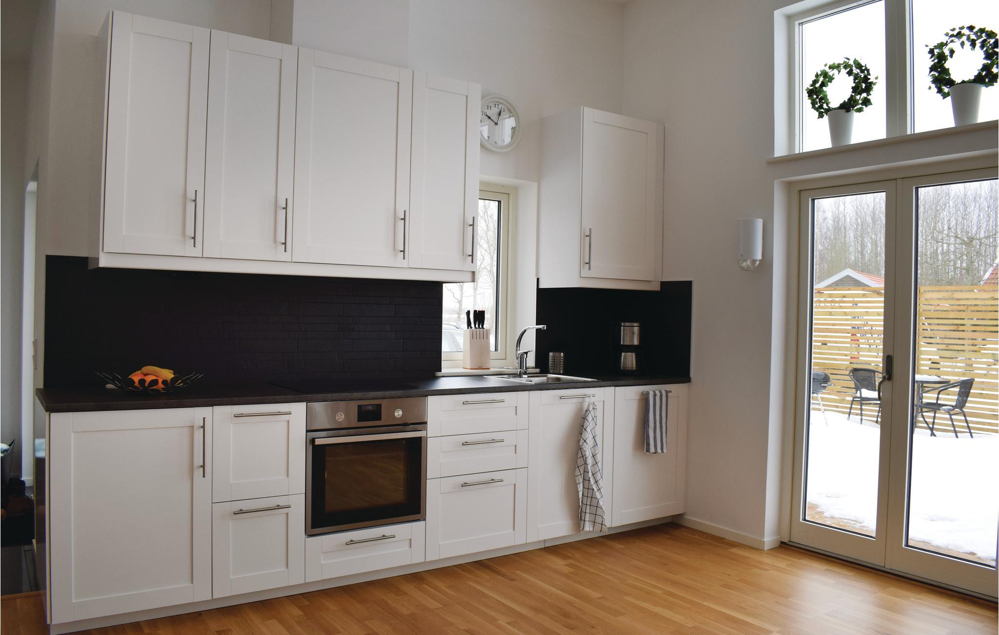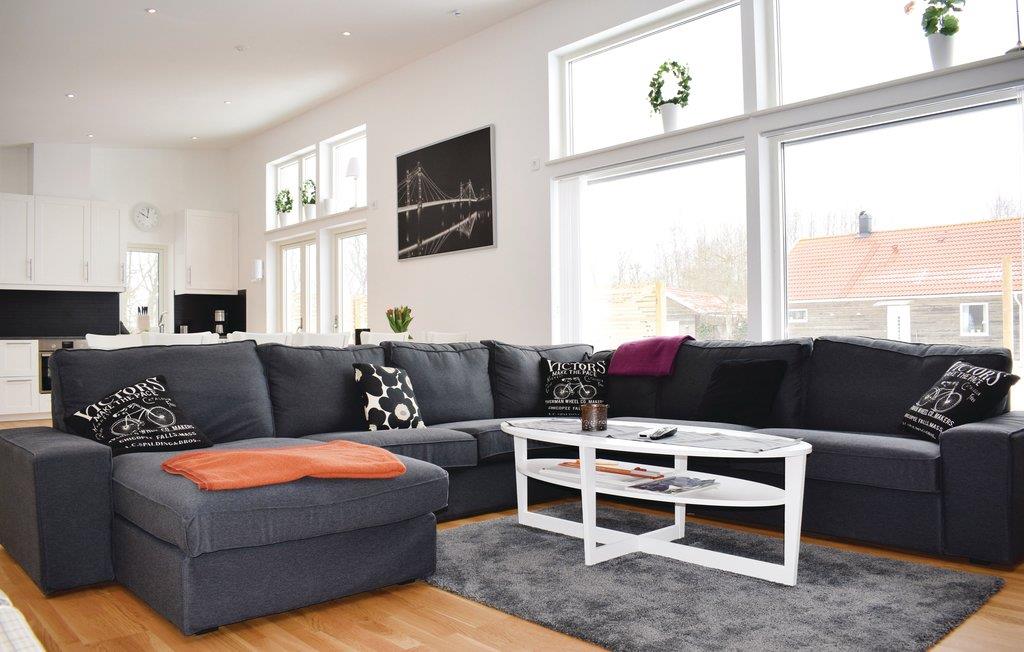 Das Ferienhaus hat eine hohe Decke und offene Planlösung. Große Sitzbereiche laden zum Verweilen, große Terrasse vor dem Haus. Große Fenster lassen viel Licht in Innere. Wenn nötig, kann ein Kinderbett ausgeliehen werden. Der Besitzer des Hauses muss jedoch vorher kontaktiert werden.