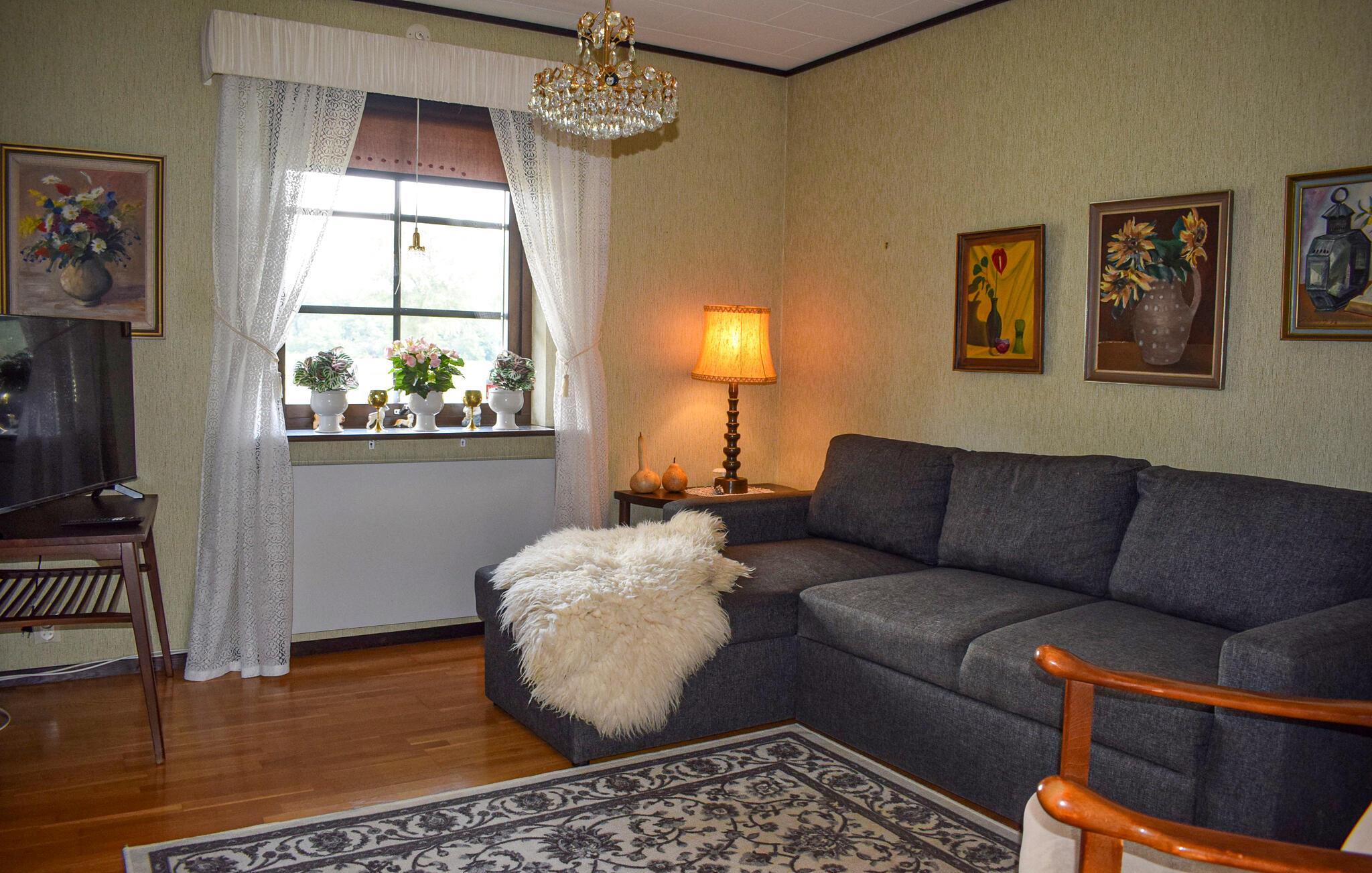 Dieses geräumige Ferienhaus heißt Sie mit einer heimeligen Atmosphäre willkommen und bietet Ihnen ein behagliches Refugium, während Sie bei reizvollen Ausflügen die Natur und Kultur der Region entdecken. Servieren Sie stärkende Gerichte am einladenden Esstisch, planen Sie bei harmonischen Mahlzeiten Ihre Unternehmungen, machen Sie es sich nach einem langen Tag auf dem Sofa gemütlich oder widmen Sie sich Ihren Liebsten bei einem Spieleabend.