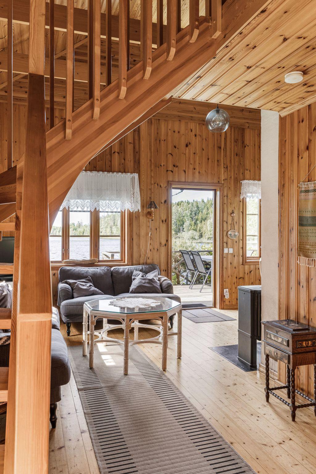 "Kasen Sjökanten", 3-Zimmer-Haus 70 m2 auf 2 Stockwerken. Mit viel Holz eingerichtet: Wohnzimmer mit Schwedenofen und Sat-TV. Ausgang zur Terrasse. 1 Zimmer mit 2 Betten. Offene Küche (3 Kochplatten, Backofen, Geschirrspüler, Toaster, Wasserkocher, Mikrowelle, Tiefkühler, Grill, elektrische Kaffeemaschine) mit Esstisch. Dusche/WC. E-Heizung. Obergeschoss: 1 abgeschrägtes Zimmer mit 2 Betten und 1 Doppeldiwanbett. Holzdielenboden. Terrasse. Terrassenmöbel, Gartengrill (mobil). Schöne Sicht auf den See. Zur Verfügung: Bügeleisen, Babybett. Bitte beachten: Nichtraucher-Haus. Rauchmelder, Feuerlöscher. Gefrierschrank ca. 80 l. Flexibilität bei der Bettenaufteilung: Es stehen mehr Schlafmöglichkeiten zur Verfügung als die maximal zugelassene Personenzahl, diese darf dennoch nicht überschritten werden.