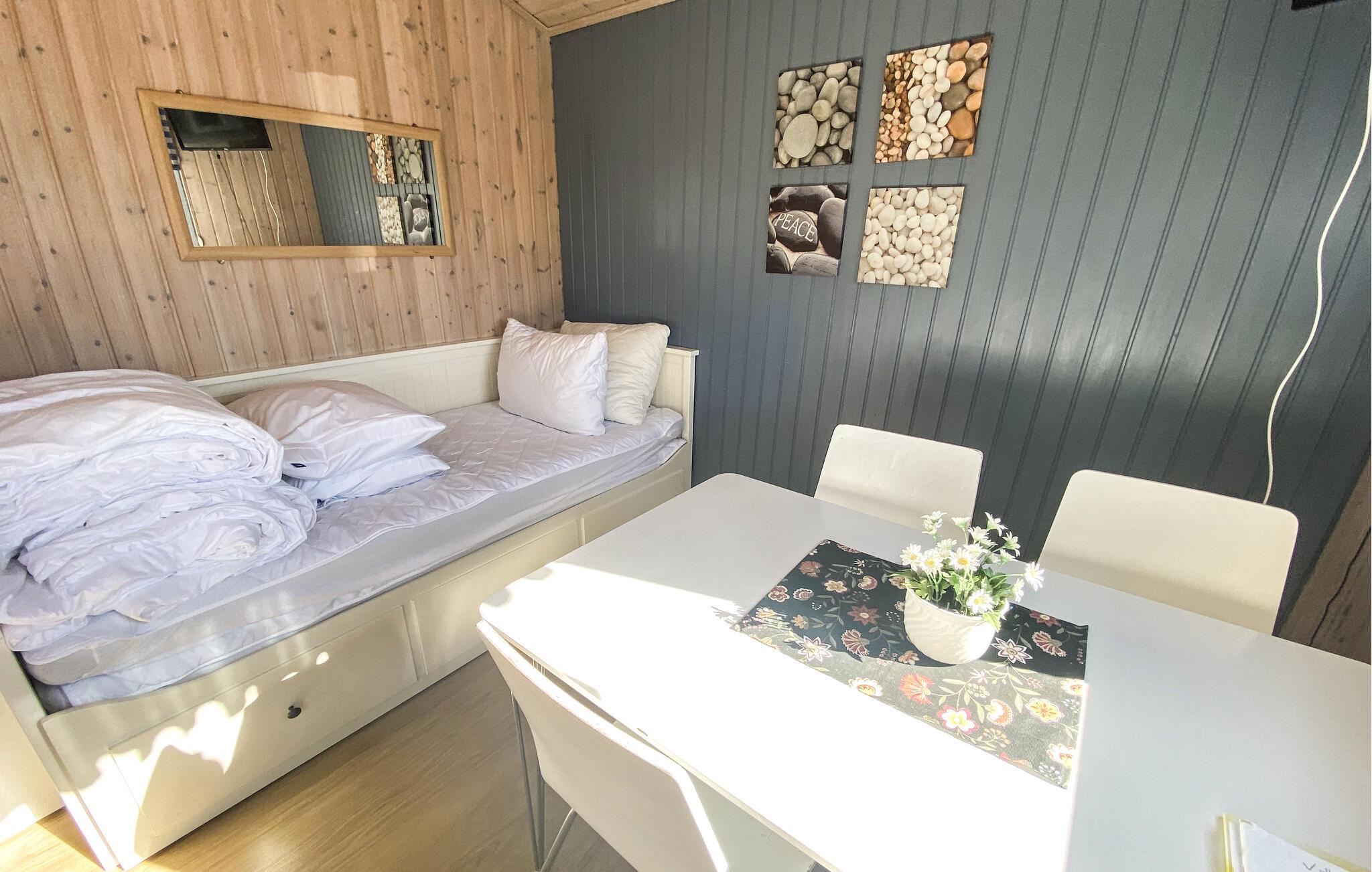 Dieses einfach und praktisch eingerichtete Haus punktet durch seine Lage nur wenige Meter vom Wasser entfernt. Bereiten Sie frische Snacks oder einen duftenden Kaffee in der Küche zu, setzen Sie sich gemeinsam an den Esstisch und verbringen Sie vergnügten Stunden bei lustigen Kartenspielen.