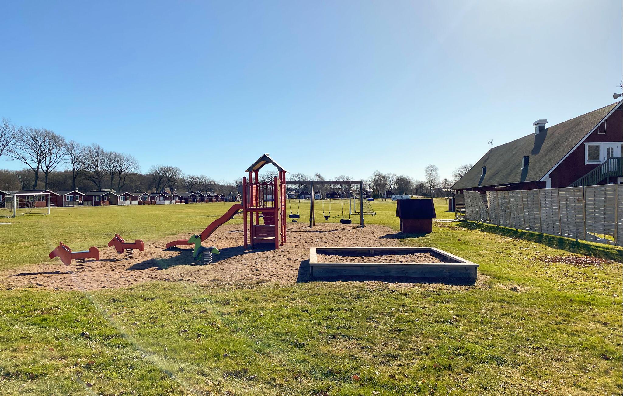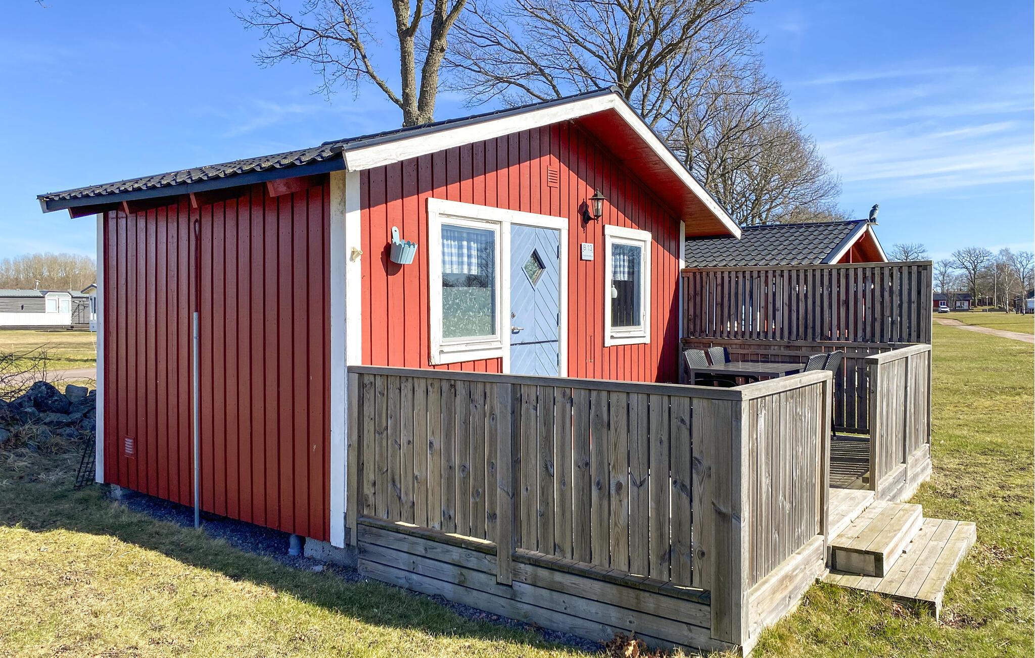 Ihr Ferienhaus liegt auf dem Campingplatz Eriksöre, in der Nähe von zahlreichen Restaurants, Eisdielen und Freizeitmöglichkeiten. Der Strand ist nur wenige Schritte entfernt und lädt zu entspannten Stunden mit Blick über den Kalmarsund ein. Entdecken Sie zudem die weiten Alvar-Landschaften und kleinen Dörfer auf Öland oder besuchen Sie Kalmar mit seinem beeindruckenden Schloss und schlendern Sie durch die Altstadt.