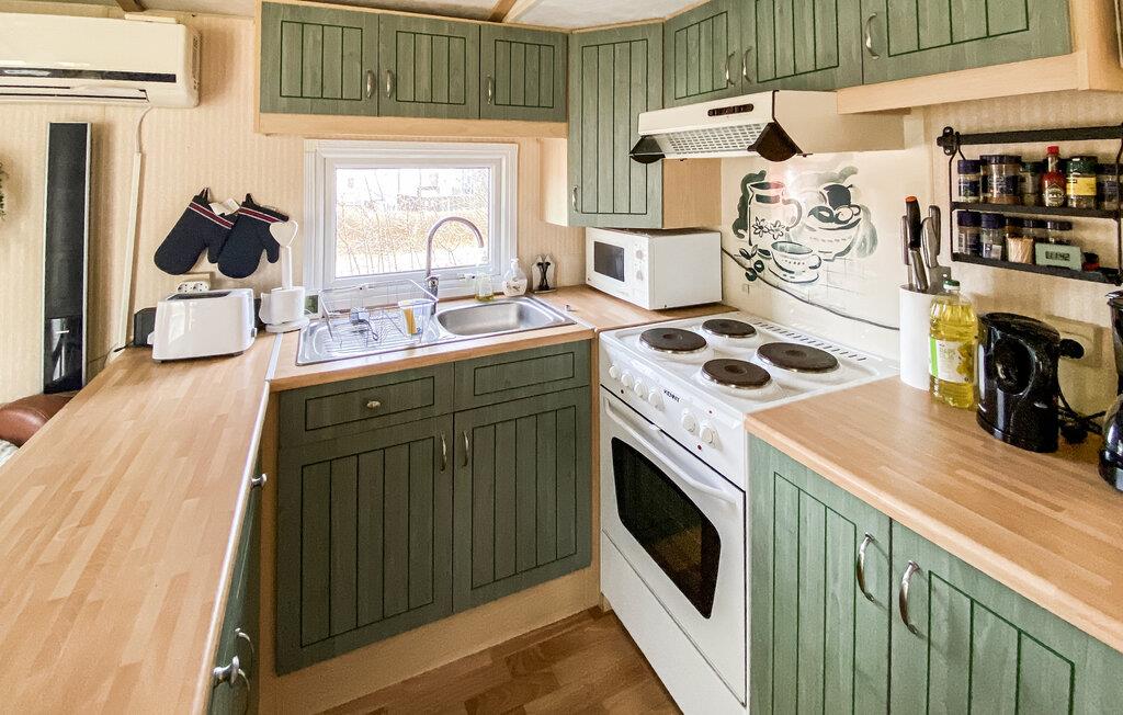 Dieses auf dem Campingplatz Eriksöre gelegene Haus ist wie geschaffen für eine erholsame Auszeit am Wasser. Entspannen Sie sich bei einer Tasse Kaffee im gemütlichen Sitzbereich, spielen Sie eine Runde Karten mit den Kindern oder zaubern Sie gemeinsam frische Mahlzeiten in der Küche.