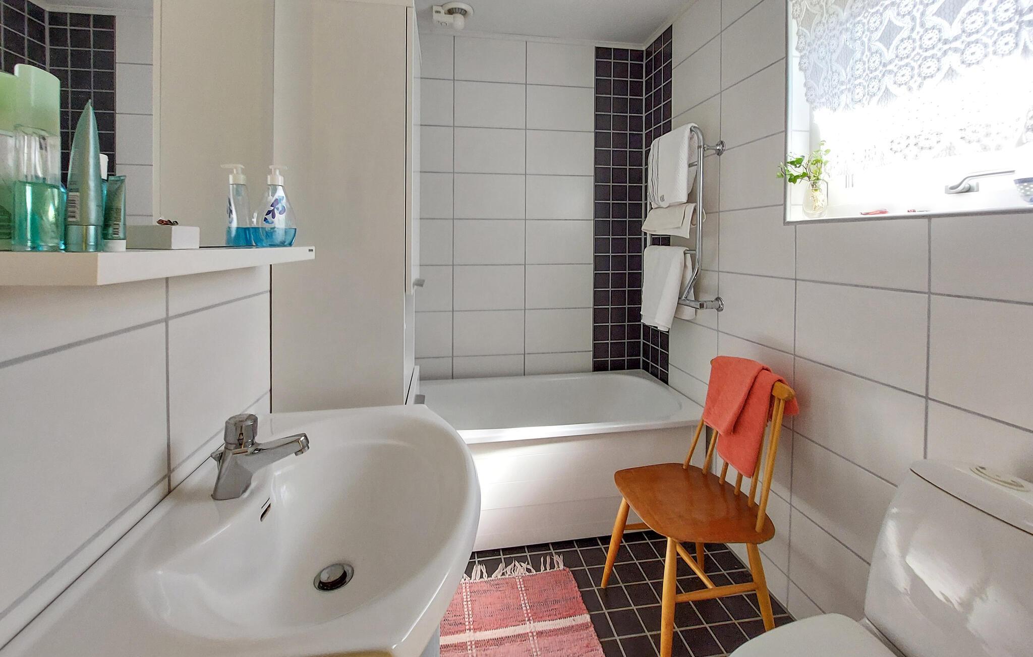 - WC mit warmem und kaltem Wasser, Badewanne