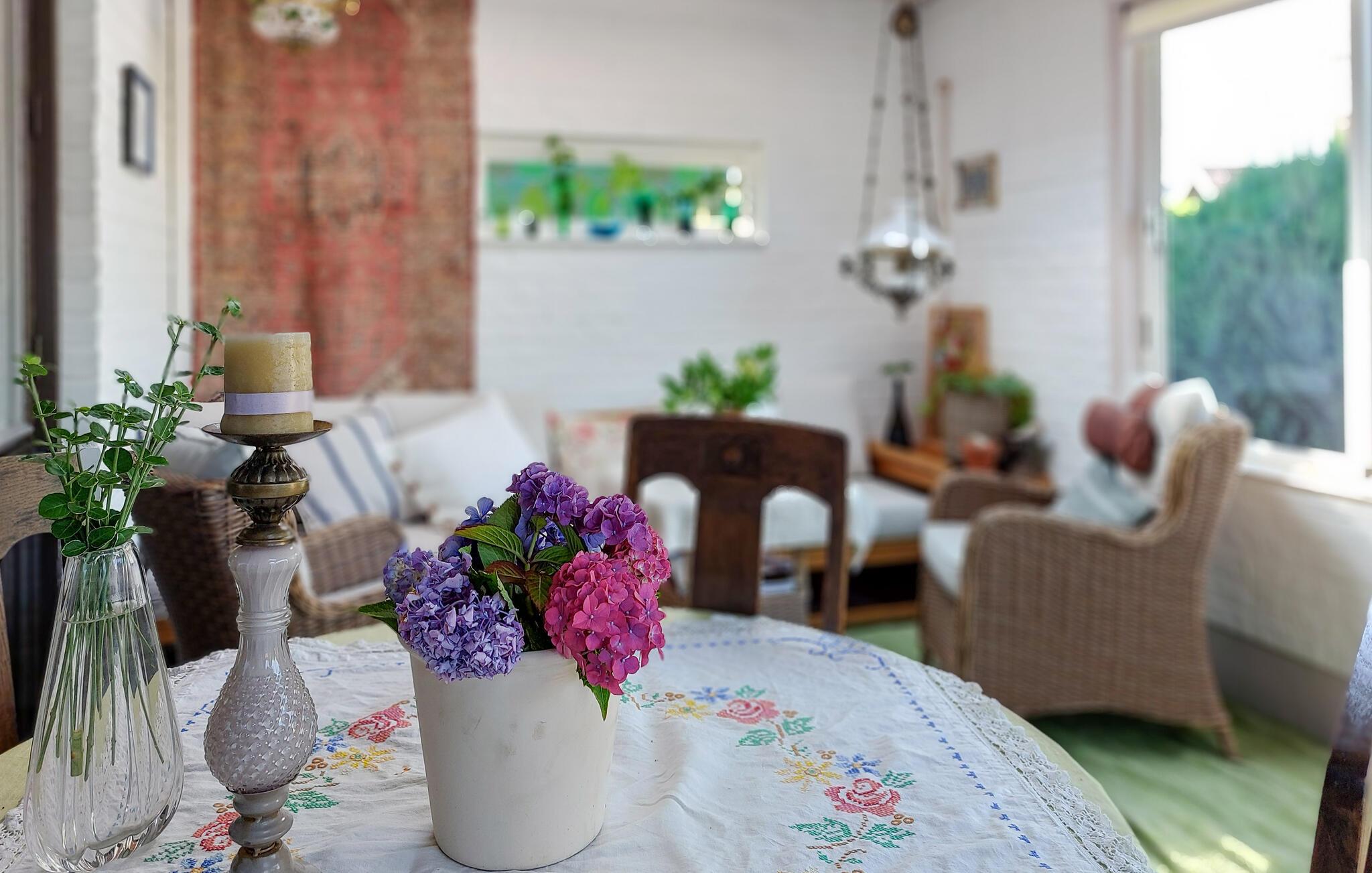 Dieses Haus besticht durch seine helle und freundliche Atmosphäre, in der Sie sich sofort zuhause fühlen. Gediegenes Mobiliar, viel warmes Holz und ein bequemes Sofa laden zu schönen Stunden beim einem geselligen Essen oder einem vergnügten Abend beim Kartenspiel ein. Lehnen Sie sich im großen Wintergarten mit einem Glas Wein zurück und genießen Sie die freie Zeit.