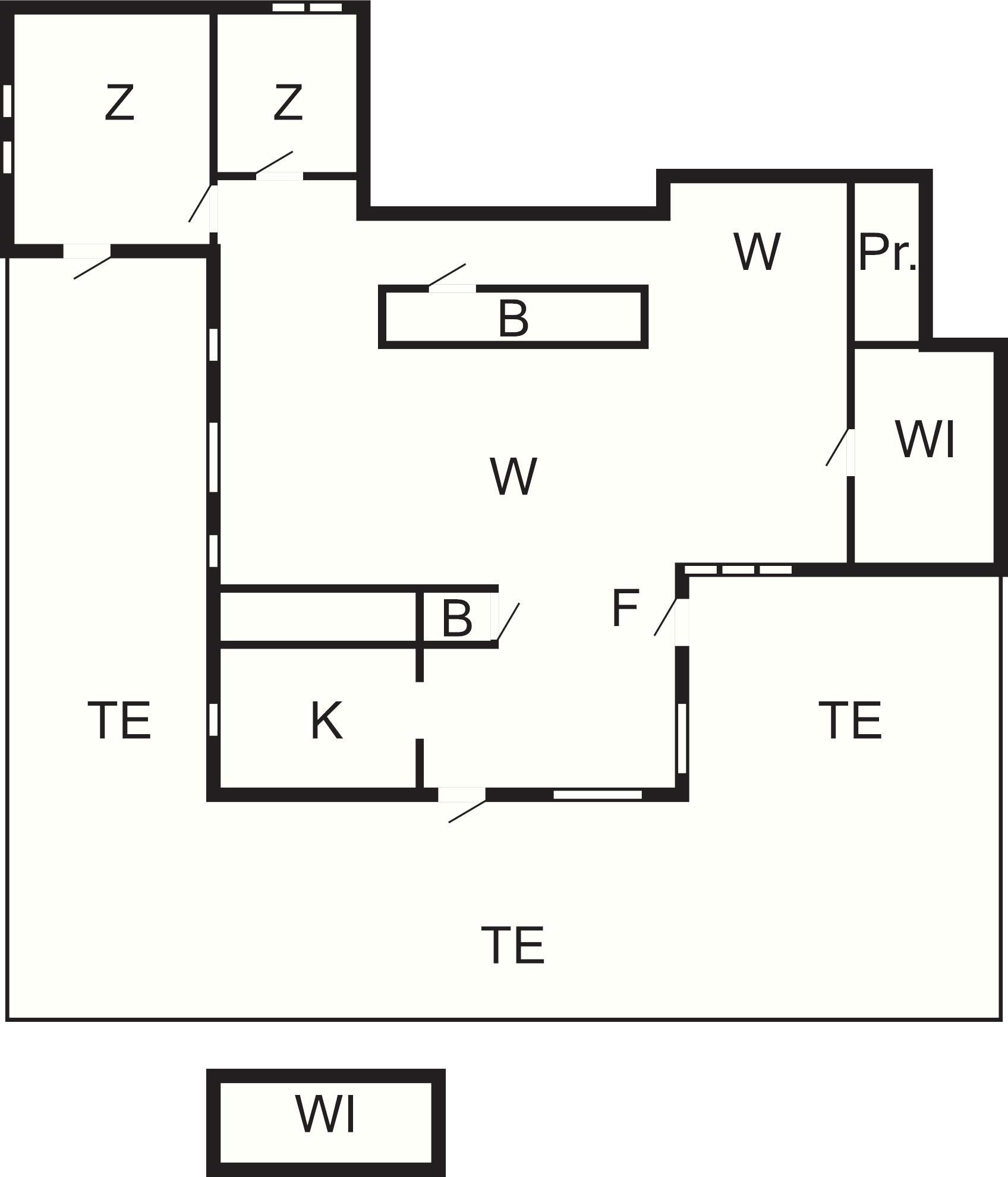 Bad: Waschm., WC, Waschb., Wanne, Dusche