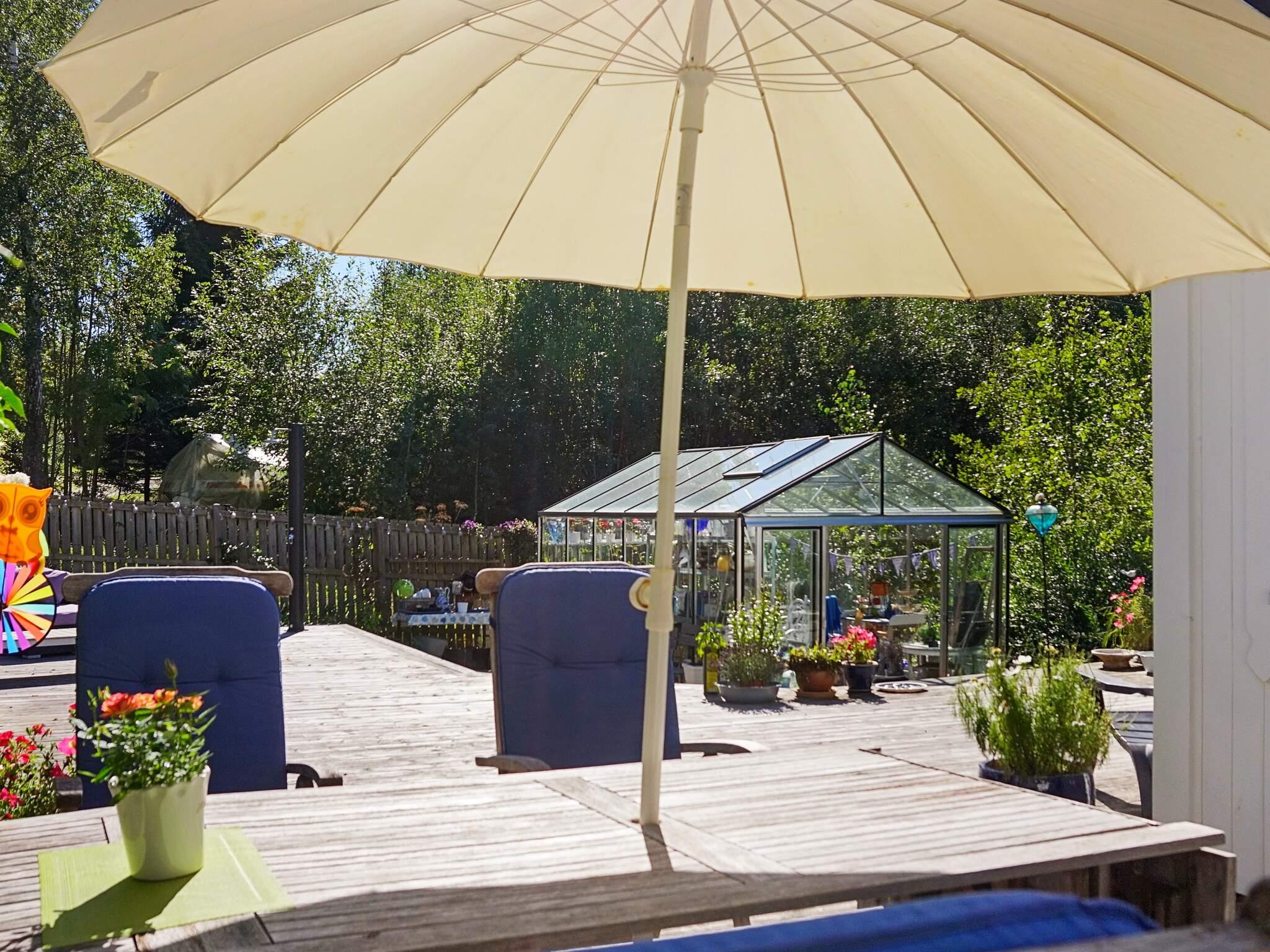 Und: Terrasse, Luft-Luft-Wärmepumpe, Grill, Naturgrundst. 1000 m2, gemischte Möblierung, Ferienhausgebiet, Nichtraucherhaus