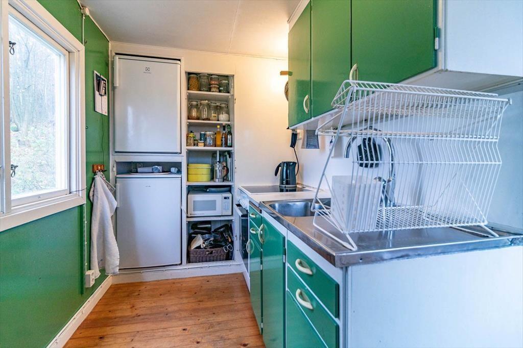Das kleine Ferienhaus liegt in sehr ruhiger Lage am Waldrand in einer Sackgasse, etwa 10 km östlich von Falkenberg in der Region Halland. Das große Grundstück hat viel Rasenfläche und bietet Platz zum Spielen. Die schwedische Westküste mit ihren Sandstränden ist etwa 15 Minuten entfernt; ein Strandbad bei Falkenberg liegt etwa 10 km entfernt, nördlich und südlich von Falkenberg findest du weitere Strände. Lebensmittelgeschäfte und Gastronomie erreichst du in Falkenberg, etwa 10 km. Der Küstenort Halmstad liegt etwa eine halbe Stunde südlich, der größte Supermarkt Europas (Gekås bei Ullared) etwa 30 km nördlich. Für einen größeren Ausflug bietet sich der Elchpark "Laganland" bei Ljungby an (etwa 105 km östlich) und Göteborg ist etwa 1 Stunde nördlich.