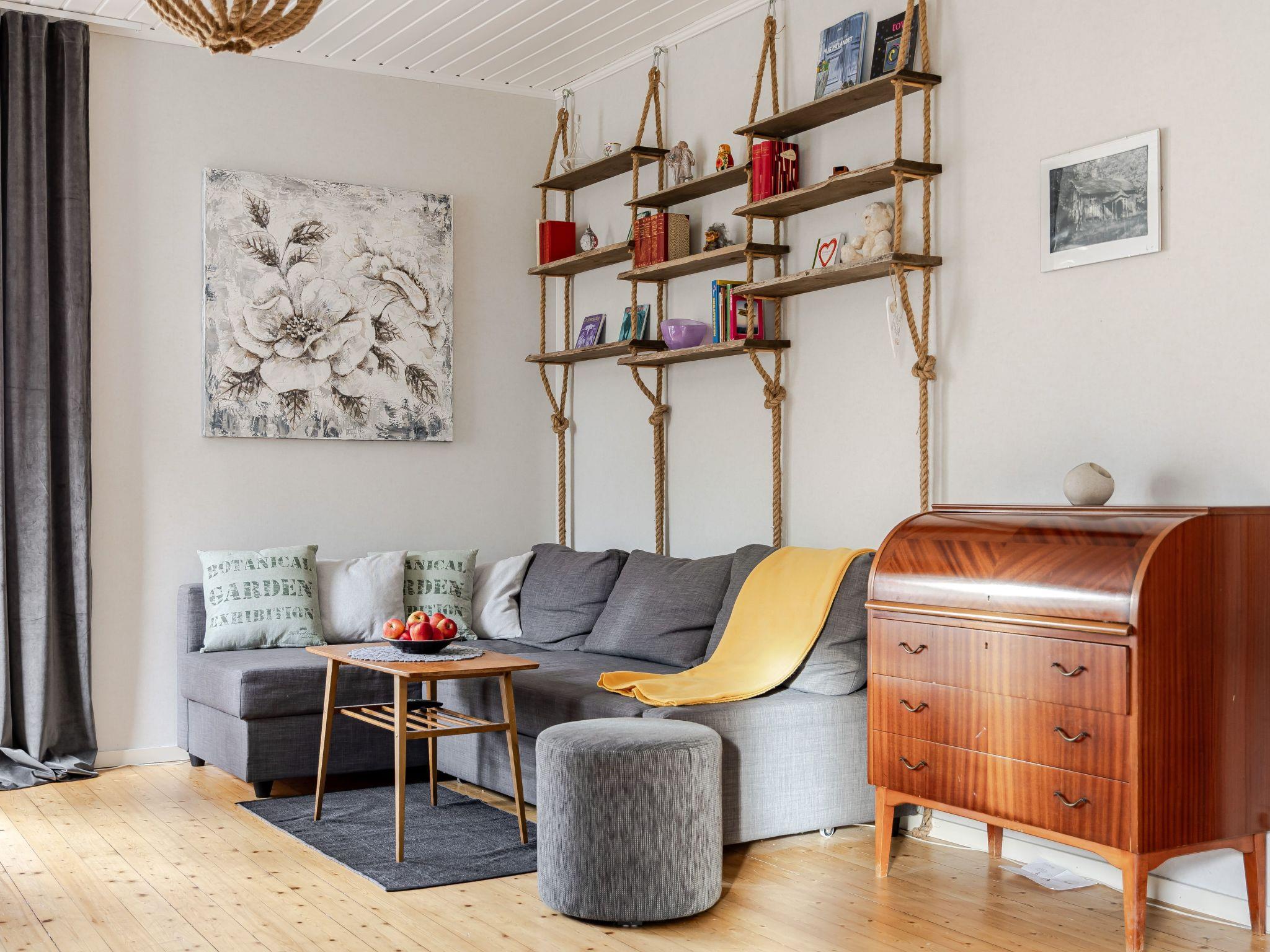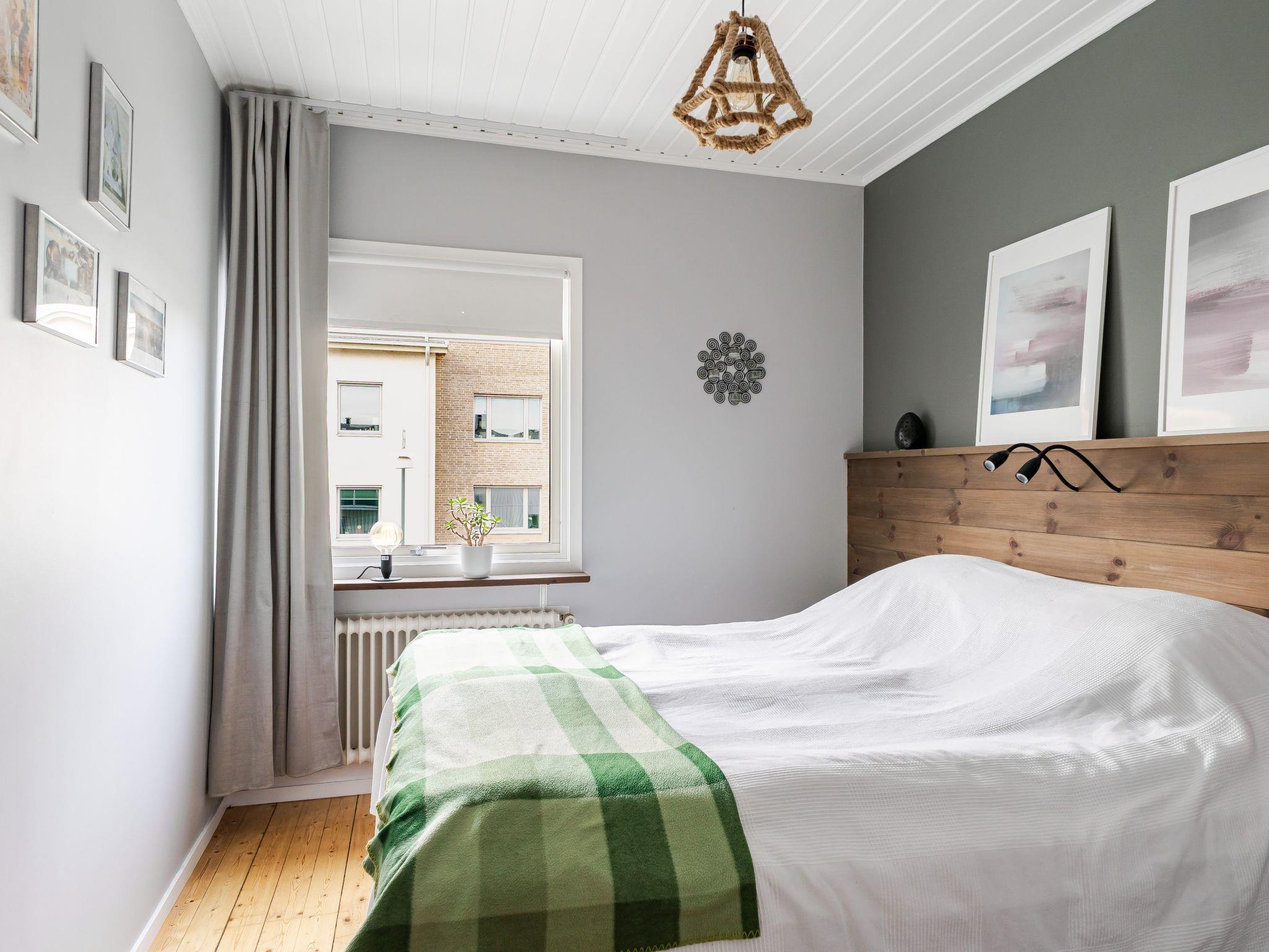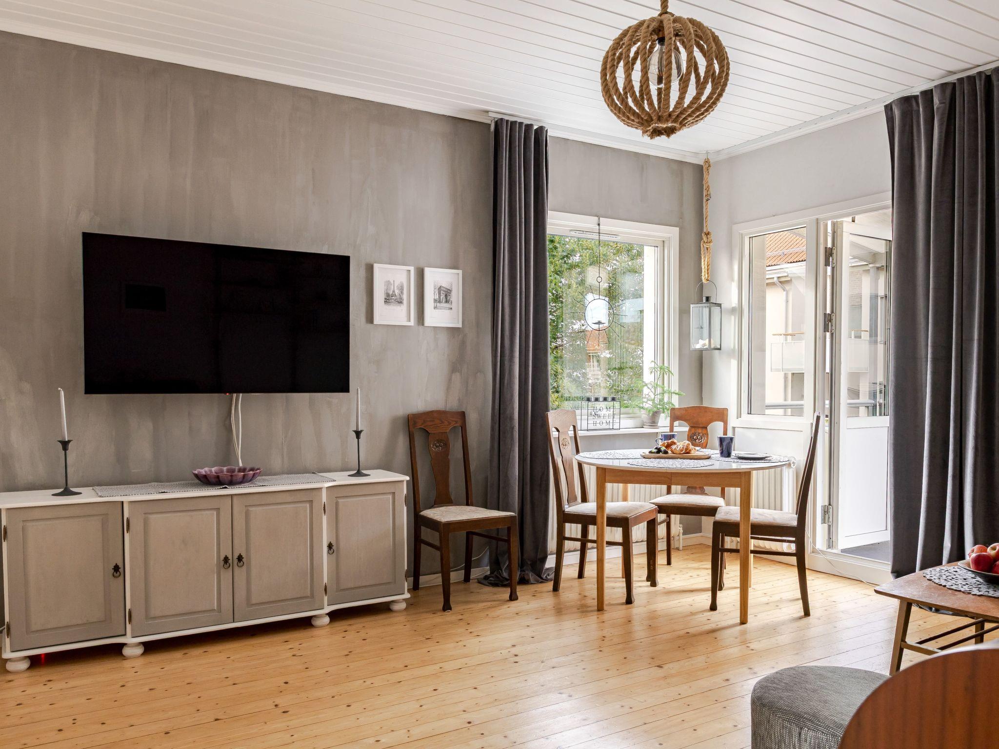 "Alegränd", 2-Zimmer-Wohnung im Obergeschoss. Sehr komfortabel und gemütlich eingerichtet: offenes Wohn-/Esszimmer mit 1 Diwanbett (140 cm), TV. Ausgang zum Balkon. 1 Zimmer mit 1 Bett (160 cm). Offene Küche (Backofen, 4 Induktionskochplatten, Toaster, Mikrowelle, Tiefkühler, elektrische Kaffeemaschine) mit 1 Diwanbett (160 cm). Dusche/WC. Holzdielenboden. Kleiner Balkon 5 m2. Balkonmöbel. Bitte beachten: Nichtraucher-Haus. Rauchmelder.