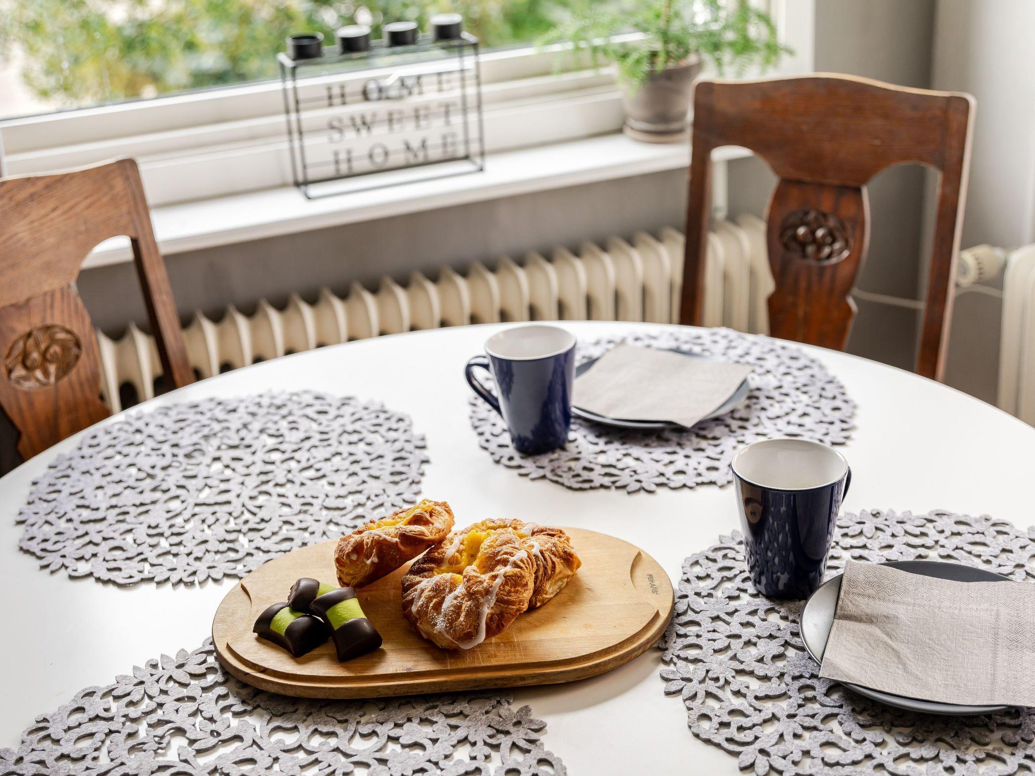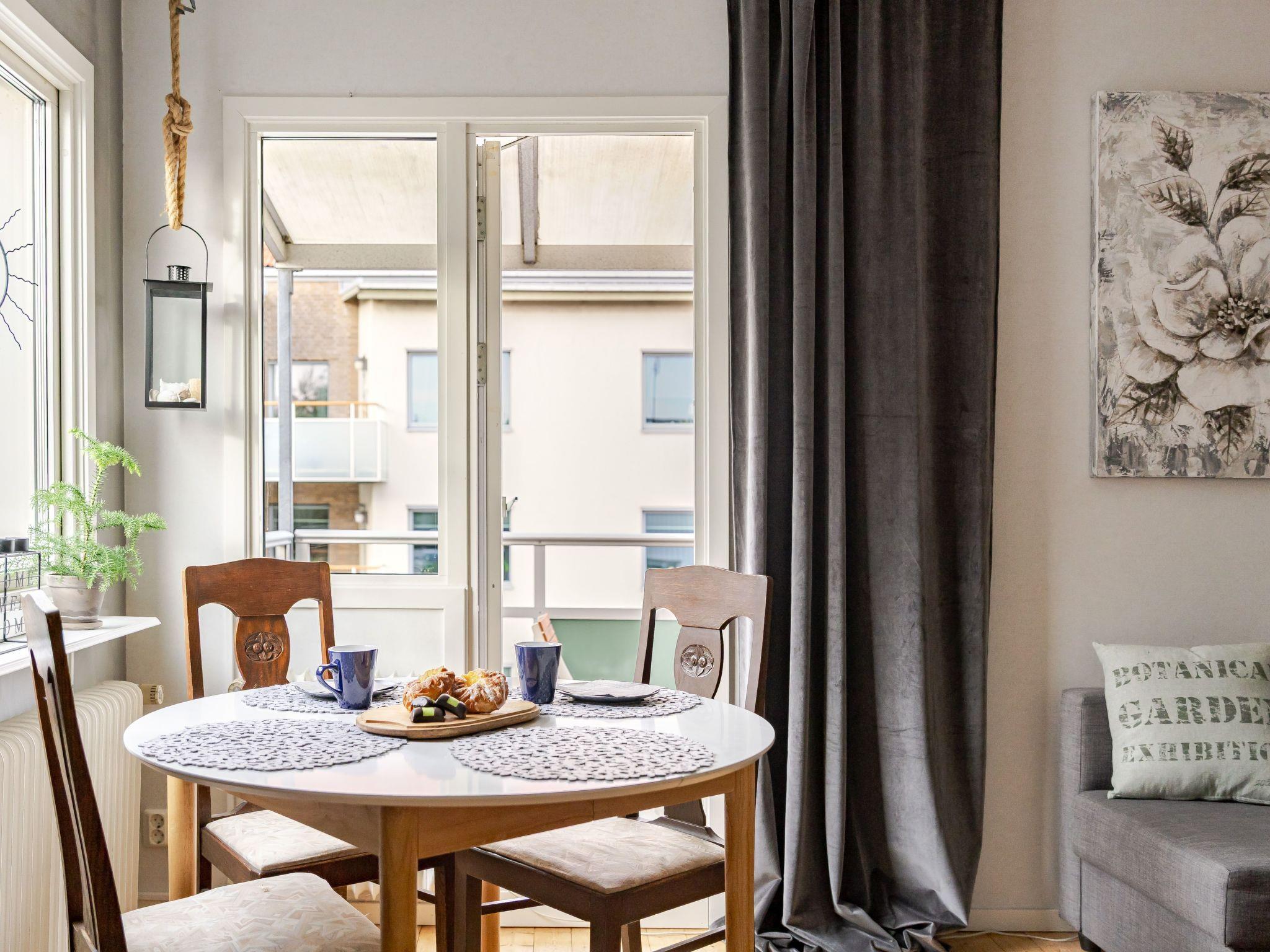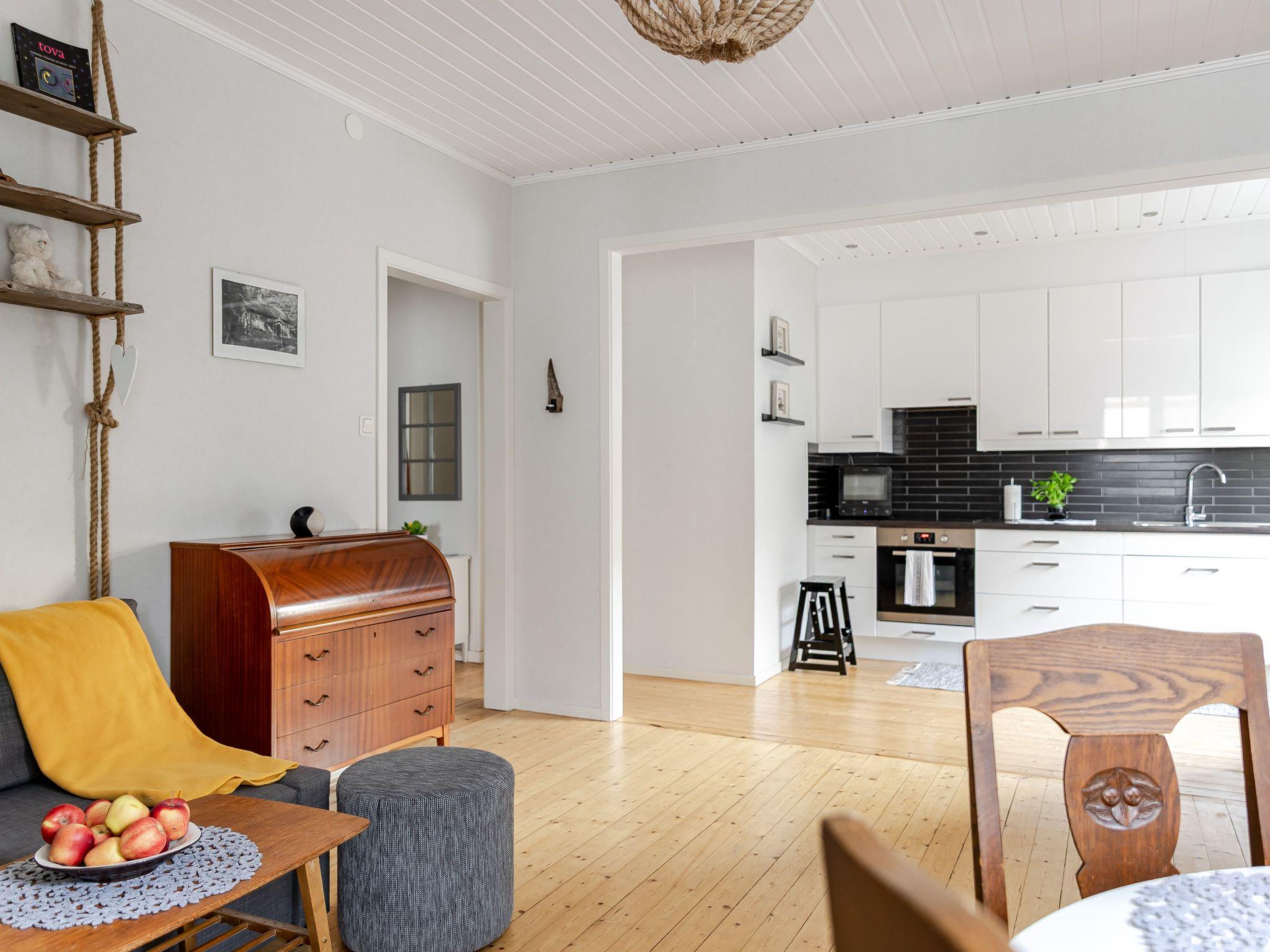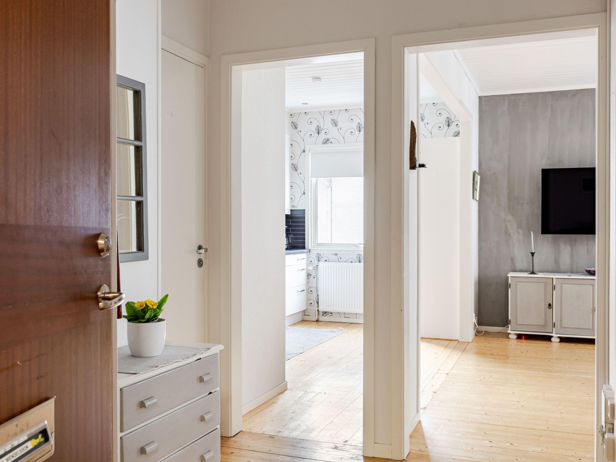 "Alegränd", 2-Zimmer-Wohnung im Obergeschoss. Sehr komfortabel und gemütlich eingerichtet: offenes Wohn-/Esszimmer mit 1 Diwanbett (140 cm), TV. Ausgang zum Balkon. 1 Zimmer mit 1 Bett (160 cm). Offene Küche (Backofen, 4 Induktionskochplatten, Toaster, Mikrowelle, Tiefkühler, elektrische Kaffeemaschine) mit 1 Diwanbett (160 cm). Dusche/WC. Holzdielenboden. Kleiner Balkon 5 m2. Balkonmöbel. Bitte beachten: Nichtraucher-Haus. Rauchmelder.