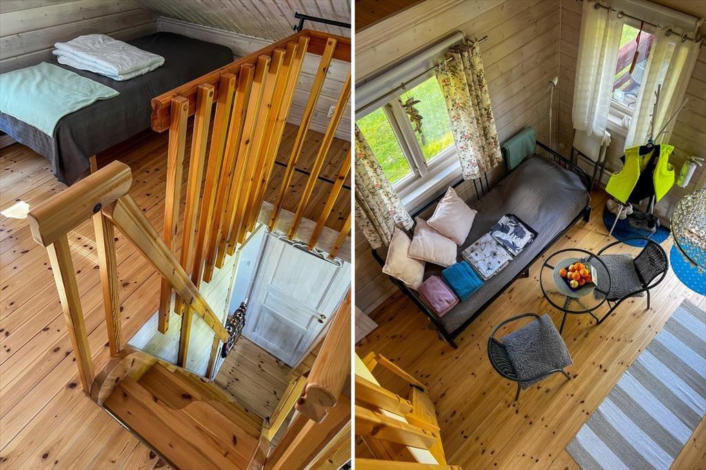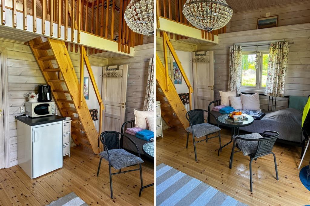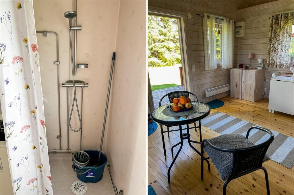 Das 2013 erbaute Ferienhaus hat zwar nur eine Wohnfläche von 35 m², aber dennoch viel zu bieten: Bis zu fünf Urlaubsgäste finden hier Platz. Die offen gestaltete Wohnküche ist mit einem Elektroherd mit zwei Platten, Mikrowelle, Airfryer, Kühlschrank mit Gefrierfach, Kaffeemaschine und Esstisch ausgestattet. Ein Kinderhochstuhl steht bei Bedarf zur Verfügung. Weiterhin finden sich hier zwei Sitzgelegenheiten und ein Bettsofa für zwei Personen. Im Schlafzimmer gibt es ein Einzelbett; auf dem Schlafboden ("Sovloft"), zu dem eine in Schweden häufig anzutreffende steile Treppe führt und man nur teilweise Stehhöhe hat, befinden sich zwei weitere Einzelbetten. Das Badezimmer ist mit Dusche, WC, Handwaschbecken und einer Waschmaschine ausgestattet. Vor dem Haus lädt eine Veranda mit Seeblick zum Verweilen ein. Das großzügige Grundstück bietet viel Platz zum Spielen und für Aktivitäten auf dem Wasser steht dir ein Kanadier für zwei Erwachsene und zwei Kinder zur Verfügung.