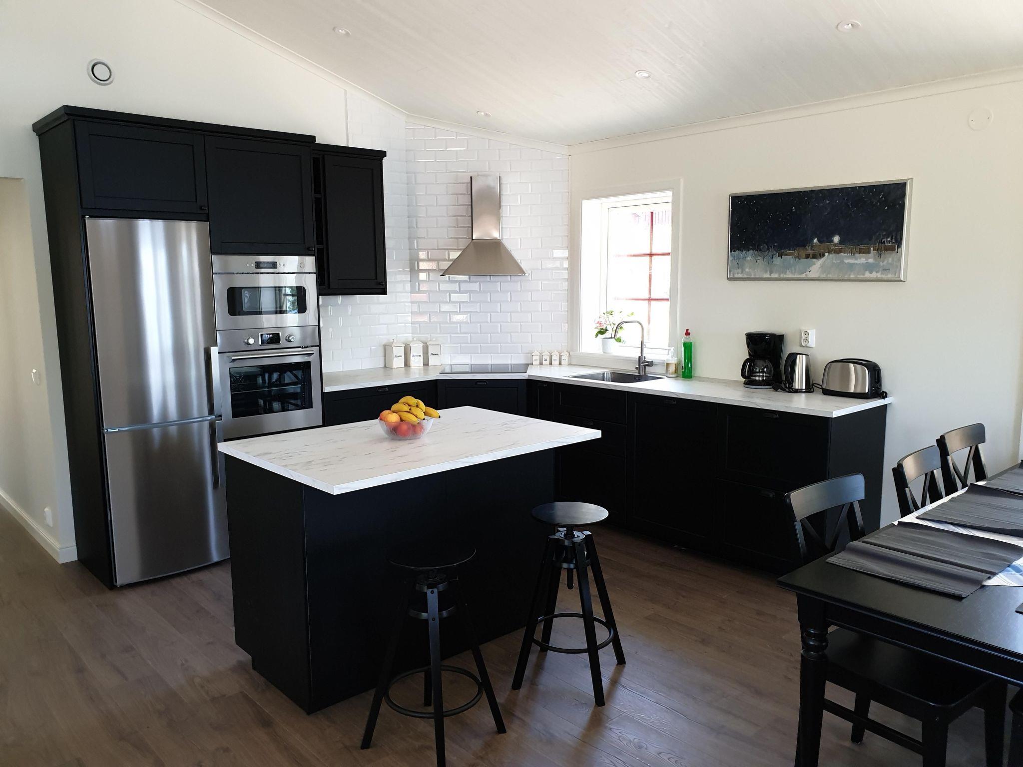 Das Haus hat Fußbodenheizung in allen Räumen. Küche mit Mikrowelle, Kühl- und Gefrierschrank, Kaffeemaschine, Wasserkocher, Spülmaschine, Toaster. Die Küche und das Wohnzimmer sind ein großer Raum. Es gibt einen Fernseher, einen Kamin, eine Essgruppe und eine Sofagruppe. Das Badezimmer hat eine Toilette, Waschbecken, Dusche und Waschmaschine. Die drei Schlafzimmer haben 2+2+1 Betten. In dem verglasten Raum gibt es eine Essgruppe für gemütliche Mahlzeiten.