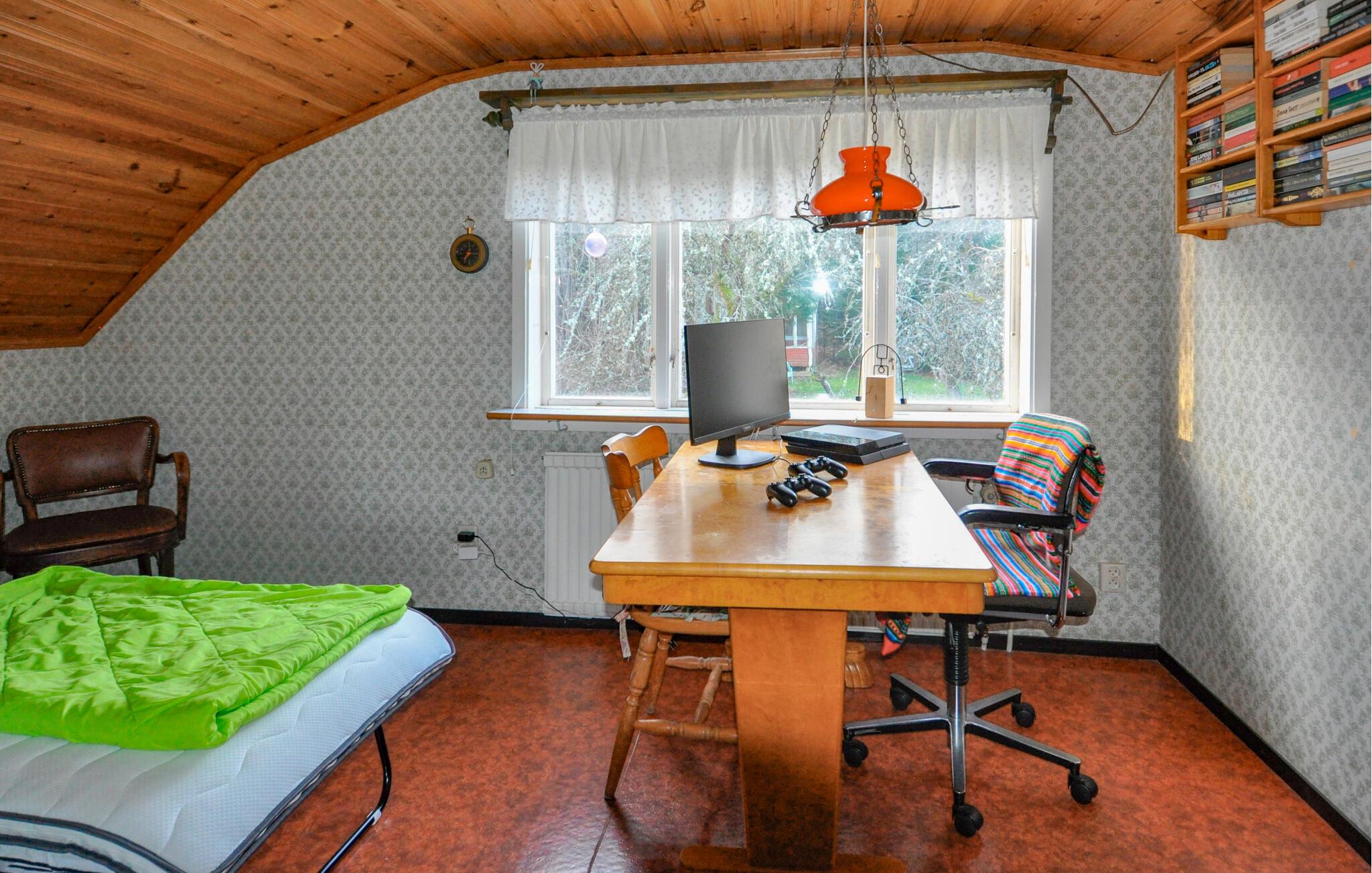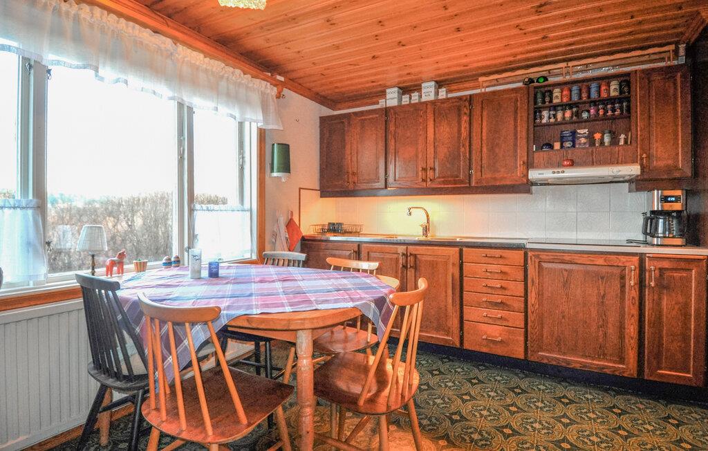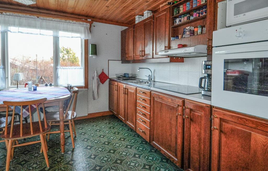 Genießen Sie einen erholsamen Urlaub in diesem gemütlichen Ferienhaus in Fengersfors, das Sie mit seiner charmanten Einrichtung und idyllischen Lage begeistern wird. Das Holzhaus, eingebettet in eine grüne Landschaft, lädt mit seiner liebevoll gestalteten Einrichtung zum Entspannen ein. Verbringen Sie gemütliche Stunden im Wohnzimmer mit dem Kamin, der eine behagliche Wärme ausstrahlt. Die komfortablen Sofas bieten Platz für die ganze Familie, während die großen Fenster den Raum mit natürlichem Licht durchfluten. Die Küche mit ihrem rustikalen Holzdesign bietet alles, was Sie für gemeinsame Mahlzeiten benötigen. Setzen Sie sich an den einladenden Esstisch und genießen Sie den Ausblick auf den weitläufigen Garten.