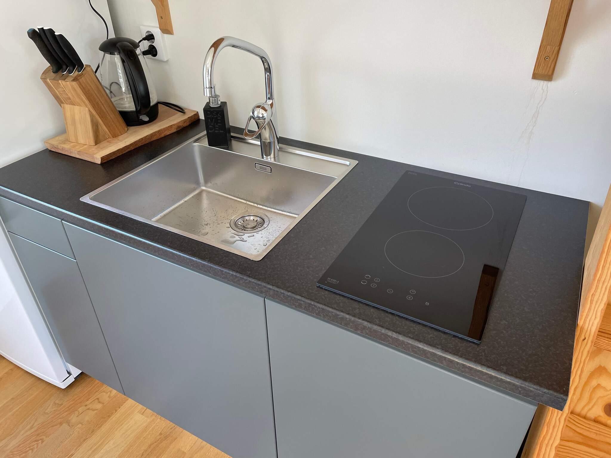 Das Haus ist sehr frisch und wurde vor ein paar Jahren gebaut. Es verfügt über eine große, möblierte Terrasse in bester Sonnenlage mit einem herrlichen Blick auf den See und die Natur. Im Haus gibt es ein geräumiges Wohnzimmer mit Essbereich und einer gemütlichen Sofaecke sowie einen Küchenbereich. Es gibt ein Schlafzimmer mit einem Doppelbett und ein kleineres Zimmer mit einem Kinderbett für Kinder bis 50 kg. Das Badezimmer hat eine Dusche und WC und ist auch mit einer Waschmaschine ausgestattet. Vom Wohnzimmer führt eine Leitertreppe zu einem Schlafboden mit zwei Betten. Dieser ist für kleine Kinder nicht geeignet, da die Treppe sehr steil ist.