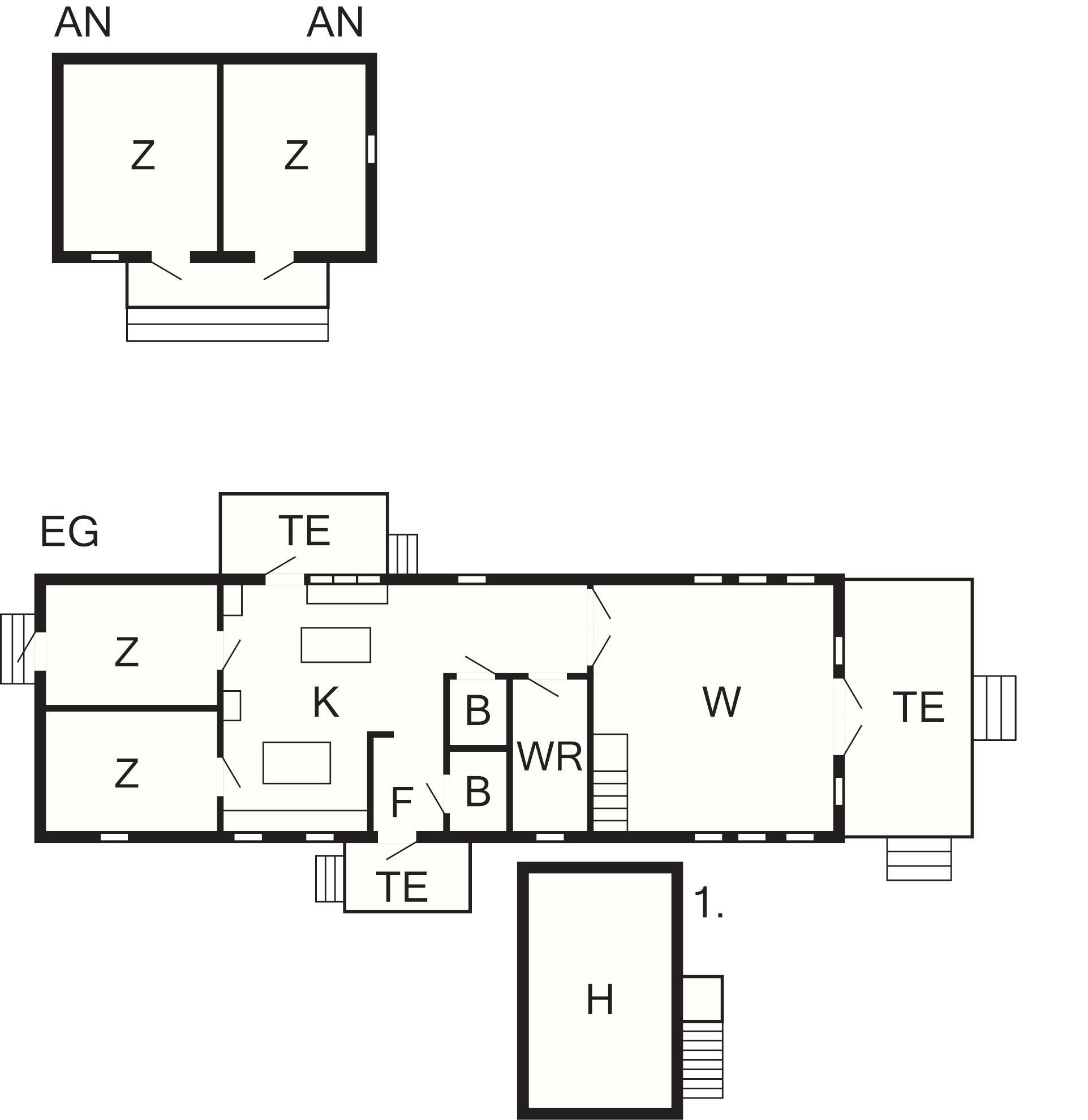 Das Ferienhaus verfügt über einen separaten Waschraum mit Waschmaschine. Auf dem Grundstück befindet sich ein Gästehaus mit zwei weiteren Schlafzimmern, die jeweils mit zwei Hemnes-Doppelbetten (160 cm) ausgestattet sind.