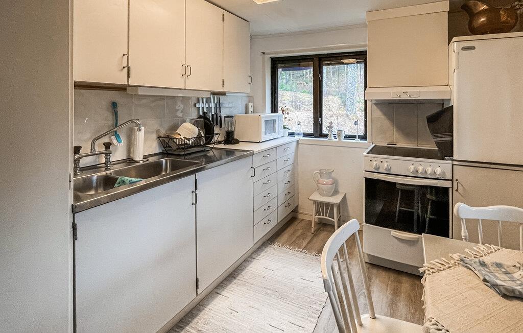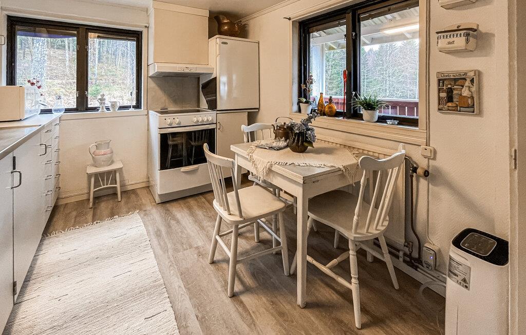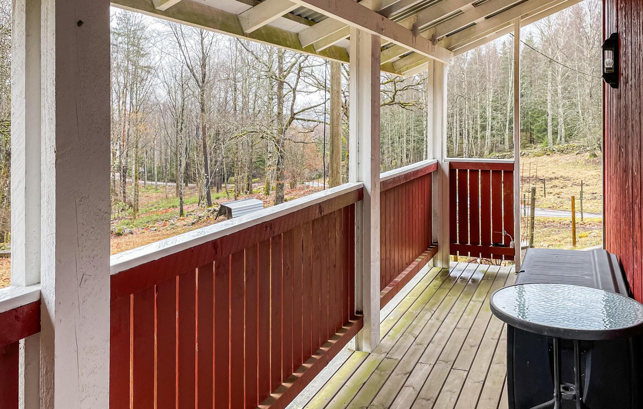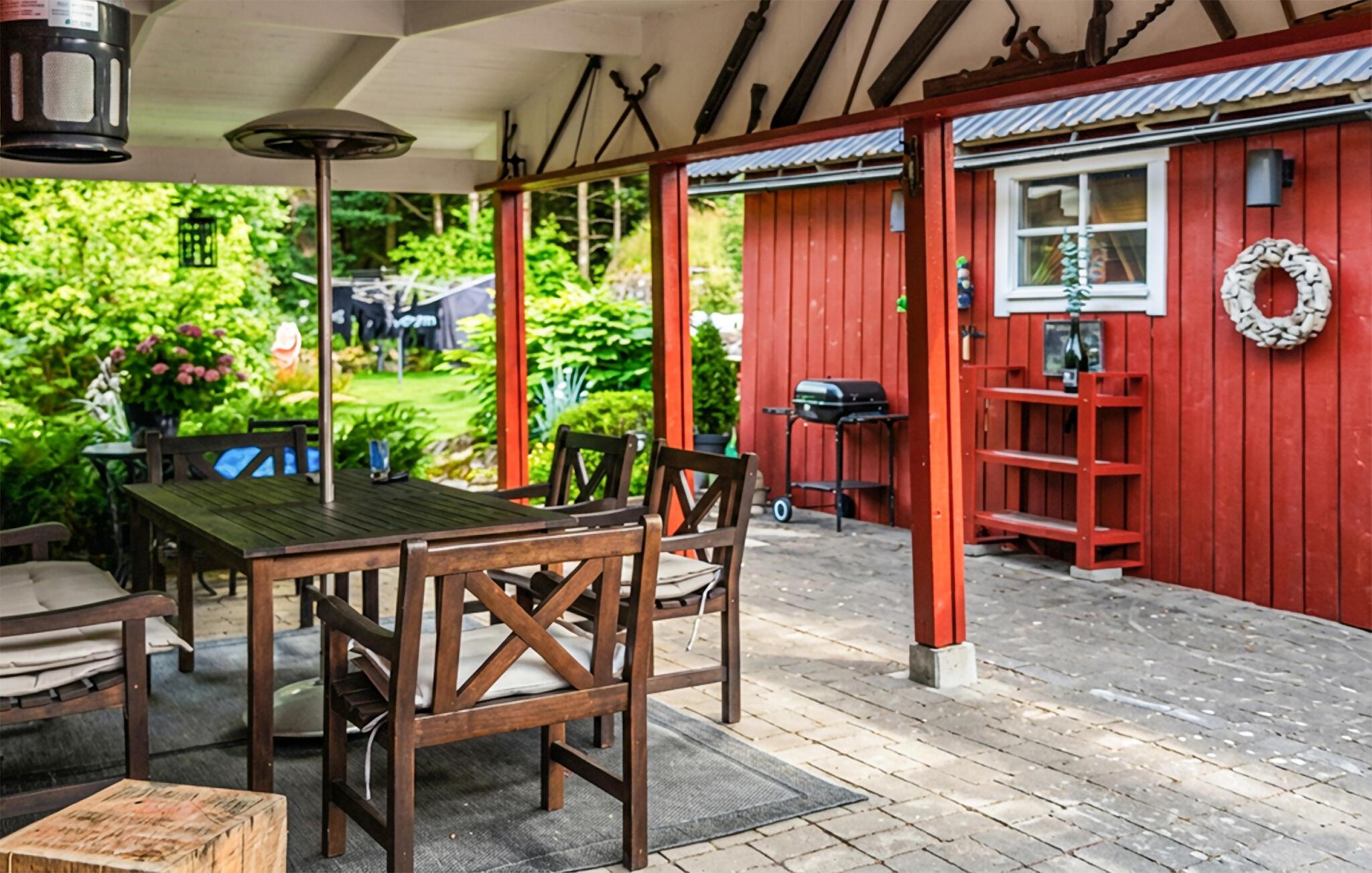 Gehen Sie hinaus auf die überdachte Terrasse und genießen Sie geschützte Stunden im Freien. Nutzen Sie den großzügigen Sitzbereich für gemeinsame Mahlzeiten oder entspannen Sie im Garten, der von Natur umgeben ist. Spazieren Sie durch die ruhige Umgebung und erreichen Sie nach kurzer Zeit den See Öresjön. Dort lädt ein Badesteg zum Verweilen ein, und Sie haben die Möglichkeit, ein Floß vom Hausbesitzer zu mieten.