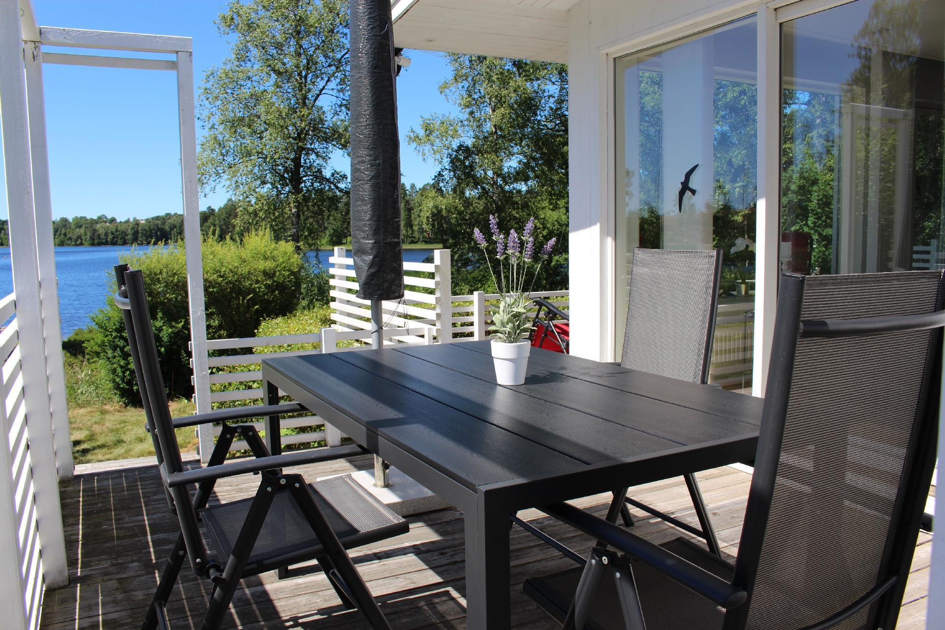 Unser liebevoll eingerichtetes Ferienhaus hat neben viel Platz und einem wundervollen Seeblick, noch einiges mehr zu bieten. Das Ferienhaus liegt außerhalb der Ortschaft in direkter Seelage. Vom Haus bis zum Wasser sind es ca. 25 m. Von den beiden Schlafzimmern und vom Wohn-/Esszimmer hat man einen wunderschönen Ausblick auf den See. Das Haus wurde im September 2017 komplett neu möbliert. Ein Glasfaseranschluss für Internet ist vorhanden und WLAN ist im Mietpreis enthalten. Ein ganz einfaches Ruderboot für zwei Erwachsene inkl. Schwimmwesten (Pflicht in Schweden) kann von den Gästen kostenlos genutzt werden. ((Je nach Verfügbarkeit.) Damit kann man einfach mal auf den See raus rudern. Angelboote kann man in der Nähe vom Haus mieten. Es handelt sich um ein Nichtraucherhaus. Haustiere sind nicht gestattet. Bettwäsche und Handtücher sind mitzubringen. Die Endreinigung ist obligatorisch (siehe Mietpreise). Es ist eine Senseo-Kaffeepadmaschine und eine Nespresso-Espressomaschine vorhanden. Kaffeepads bzw. Nespressokapseln müssen mitgebracht werden, da diese nicht in Schweden zu kaufen sind. Das Haus hat eine Wohnfläche von 97 qm auf einer Ebene. Es verfügt über eine Diele, zwei Schlafzimmer, Wohn-/Esszimmer, Küche und Bad. Vier Personen können hier eine herrliche Zeit verbringen (keine Anglergruppen, keine Jugendgruppen). Für die Kleinen ist ein Reisebett und ein Hochstuhl vorhanden. Diele Der Eingangsbereich bietet eine Garderobe und einen großen Garderobenschrank sowie unsere “ chill out area“ mit Schaukelstuhl. Hier kann man es sich mit einem Buch oder den dort ausliegenden Prospekten von der Umgebung gemütlich machen. Schlafzimmer 1: Bett 1,8 m x 2,0 m, großer Kleiderschrank, Terrassentür Richtung See, Seeblick Schlafzimmer 2: Bett 1,40 m x 2,0 m, Kleiderschrank, Seeblick Wohnzimmer Große Couch, Flachbildfernseher mit deutschen Programmen via SAT, schwedische Programme via Antenne, Soundbar, Internetradio, Seeblick Esszimmer Großer Esszimmertisch mit 6 Stühlen, Relaxesessel, Hochtisch mit vier Hockern, Seeblick Küche E-Herd mit Ceran, Dunstabzug, Mikrowelle, Kaffeemaschine, Espressomaschine (Nespresso), Padmaschine(Senseo), Spülmaschine, kaltes und warmes Wasser, Kühlschrank, Gefrierschrank, Waffeleisen, Rührgerät, Geschirr, Besteck, Gläser (auch Wein-, Sekt- und Biergläser), Töpfe, Pfannen, Küchenwaage, Wasserkocher, Toaster, Staubsauger, Bügelbrett, Bügeleisen Bad Komplett gefliest, Fußbodenheizung, Handtuchtrockner, Dusche, WC, Waschbecken mit Spiegelschrank, separates Spülbecken, Waschmaschine und Trockner, diverse Schränke, Haartrockner
