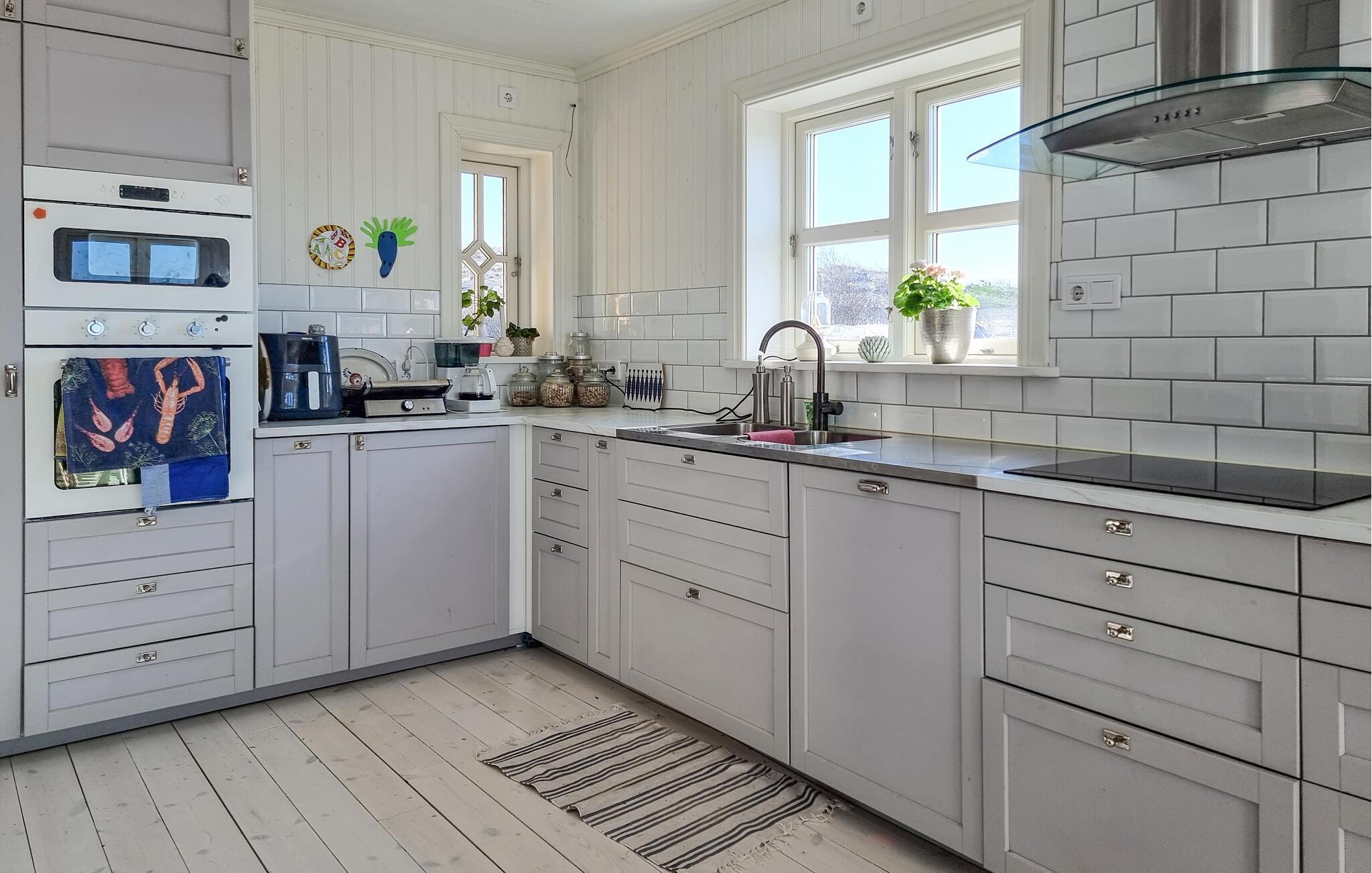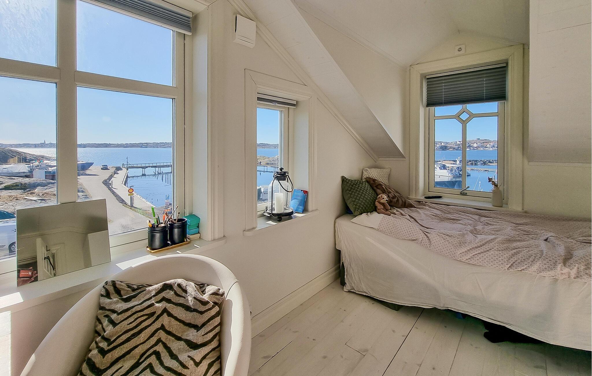 Erleben Sie entspannte Tage in Ihrem stilvollen Ferienhaus mit weitem Blick über den Hafen und Schärengarten. Direkt am Wasser gelegen, können Sie hier die maritime Atmosphäre genießen, das Treiben im Hafen beobachten und die Ruhe der Westküste auf sich wirken lassen. Entspannen Sie auf einem der zahlreichen Sofas und genießen Sie überall die wundervolle Aussicht durch die Fenster. Die Einrichtung verbindet modernen Komfort mit liebevollen, individuellen Details. Kochen Sie gemeinsam in der großzügigen, hellen Küche und essen Sie am großen Tisch in geselliger Runde, während Sie das Licht genießen, das durch die vielen Fenster fällt.