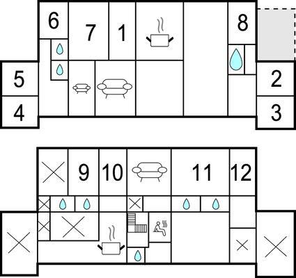 Badezimmer (nr. 6) - WC. Warmes und kaltes Wasser. Dusche