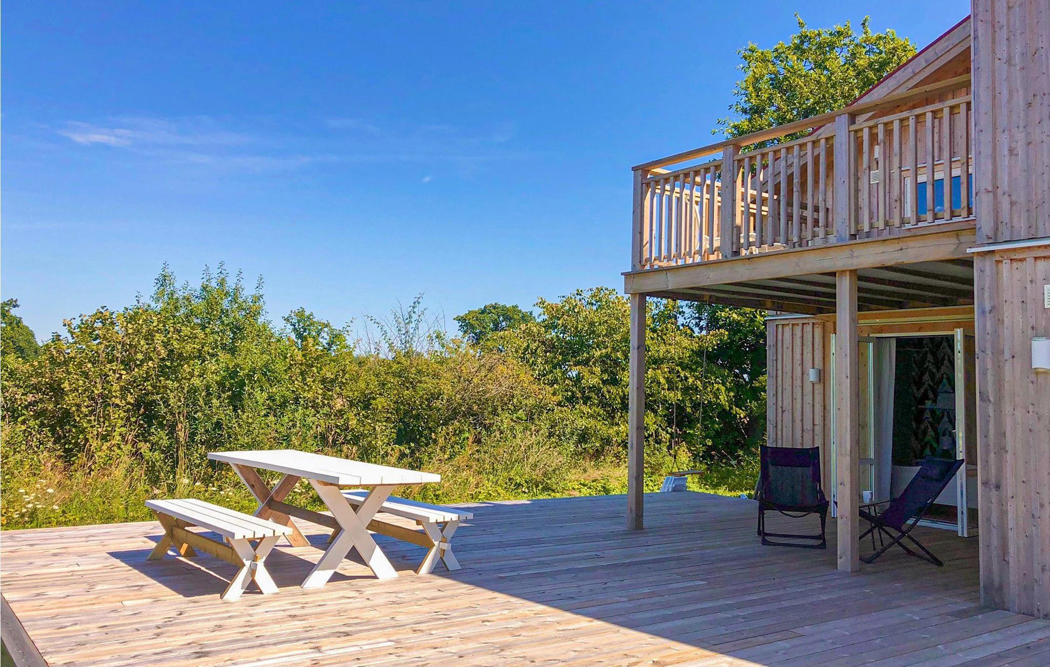 Draußen gibt es eine große und schöne Holzterrasse, die teilweise überdacht ist und den großen Pool umgibt. Das Haus verfügt im Untergeschoss über 3 Schlafzimmer, ein großes Badezimmer mit Dusche und Sauna sowie eine große Küche und ein Wohnzimmer in offenem Schnitt. Von der Sauna gibt es auch einen Ausgang zur Terrasse. Das zweite Stockwerk besteht aus einem Wohnzimmer mit großem Sofa und einem Schlafzimmer. Von hier aus kommen Sie auf den Balkon, von wo aus Sie einen herrlichen Blick auf die offene Insellandschaft haben.